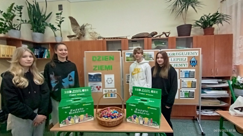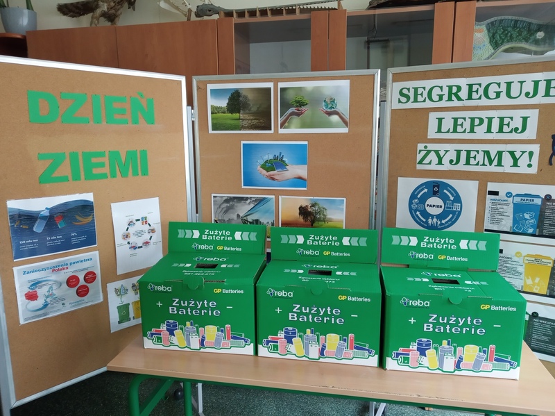 Jednym z działam w ramach obchodów Międzynarodowego Dnia Ziemi była szkolna zbiórka baterii. Celem akcji jest promocja selektywnej zbiórki i recyklingu zużytych baterii. Zbiórka pod patronatem firmy Reba Organizacja Odzysku S.A. prowadzona jest przez cały rok szkolny, jednak w kwietniu szczególnie chcieliśmy zwrócić uwagę na właściwe postępowanie wobec szczególnie niebezpiecznych odpadów, jakim są baterie i akumulatory. Ich właściwa zbiórka i utylizacja pomagają zapobiegać zatruciu wody i gleby metalami ciężkimi. Pamiętajmy! Zbieramy baterie i przekazujemy do specjalnie przygotowanych punktów – także w naszej szkole. Szukajcie zielonych kartonów i chrońcie środowisko!