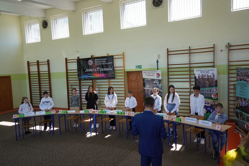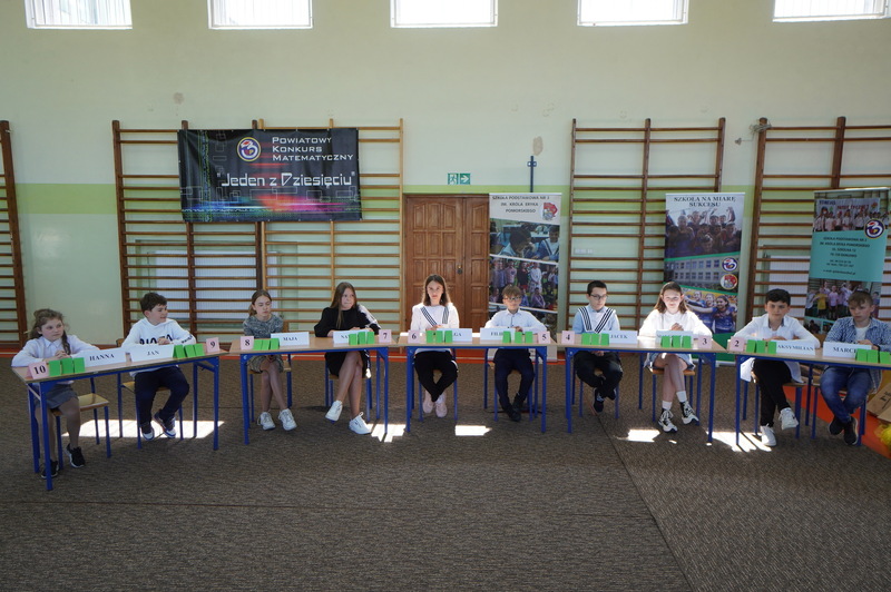 Do dalszego etapu zakwalifikowało się 10 zawodników z największą ilością punktów. Czołową dziesiątkę stanowili następujący uczniowie: Jan Lipiński z SP w Słowinie, Filip Mieczkowski z SSP w Darłówku, Natalia Sieradzka z SP w Postominie, Maja Podlasiewska i Marcin Proboszcz z SP w Sławnie, Hanna Kasprzykowska, Małgorzata Matuszewska, Maksymilian Suszek, Jacek Wrzesiński i Olga Żłobecka z SP3 w Darłowie. To oni przystąpili do matematycznych potyczek wzorowanych na znanym, telewizyjnym turnieju „Jeden z dziesięciu”. W czasie turnieju, pomimo ostrej rywalizacji, panowała przyjazna atmosfera.