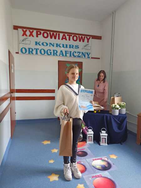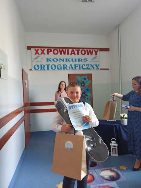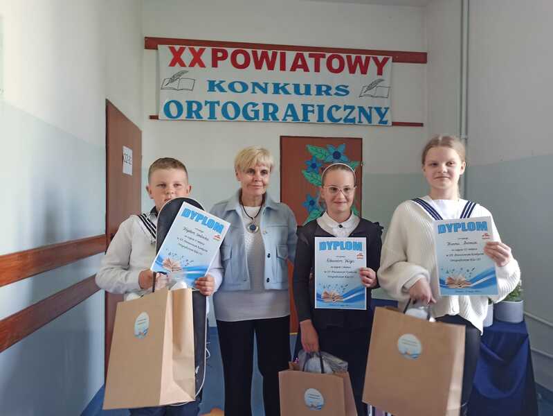17 maja 2023 r. dziesięcioro trzecioklasistów z naszej szkoły wzięło udział w XX Powiatowym Konkursie Ortograficznym, który odbył się w Szkole Podstawowej nr 3 w Sławnie. Zadaniem uczniów było napisanie bardzo trudnego dyktanda, co zajęło im ponad godzinę. Nagrodzono troje uczniów. Możemy być dumni, że II i III miejsce przypadło uczniom z SP3 w Darłowie. II miejsce zajął szkolny Mistrz Ortografii Kajetan Szałacha z klasy 3d, a III Hanna Bronisz z 3c. Nasi laureaci przez cały rok szkolny kształtowali i rozwijali swoje umiejętności w dziedzinie polskiej ortografii na kole ortograficznym. Gratulujemy zwycięzcom, a wszystkim uczestnikom dziękujemy za wspaniałe reprezentowanie darłowskiej TRÓJKI.