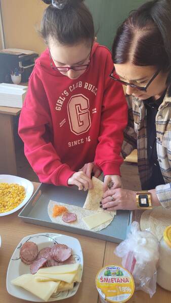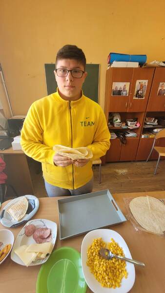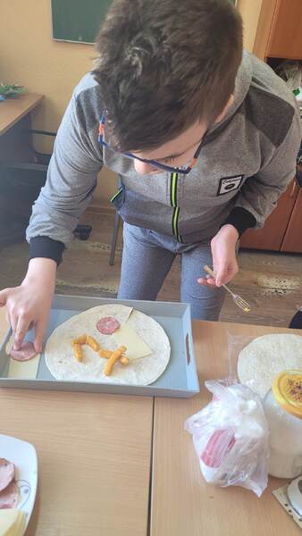 W dniu 19.05.2023 r. uczniowie przygotowywali gorące kanapki podane z surówką. Meksykańska tortilla była wspaniałą bazą do powstania smacznego i zdrowego posiłku. Zadanie okazało się łatwe i sprawiło wiele radości. Korzystając z darów polskiej ziemi uczniowie przygotowali surówkę z marchewki, przy okazji ucząc się bezpiecznie korzystać z tarki. Własnoręcznie wykonany posiłek smakował podwójnie pysznie. Wszyscy prosili o dokładkę.