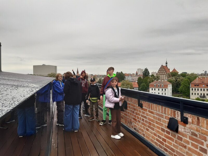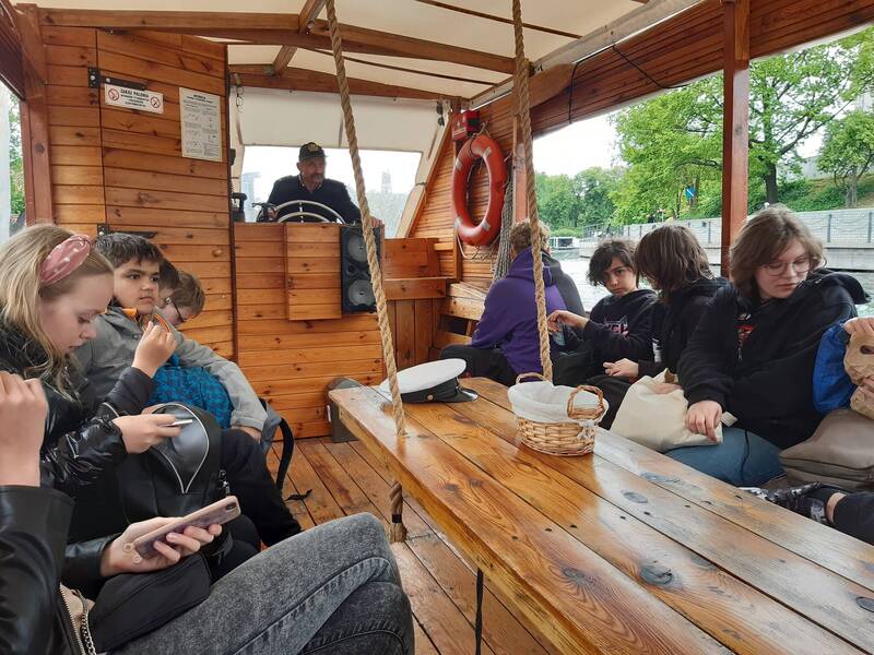 Po obiedzie spacerowaliśmy po Wyspie Młyńskiej, podziwialiśmy budynki Młynów Rothera oraz panoramę Bydgoszczy z tarasu widokowego. Największa atrakcja została na koniec. Uśmiechnięci i smagani wiatrem popłynęliśmy w rejs po rzece Brdzie.