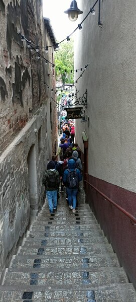 Następnie idąc ulicą Długą, podziwiając stylowe kamieniczki z końca XVIII i początku XIX w., doszliśmy do Muzeum Mydła i Historii Brudu, gdzie wzięliśmy udział w warsztatach i wykonaliśmy samodzielnie mydełka. Dowiedzieliśmy się też sporo na temat higieny, a raczej jej braku, w minionych stuleciach.