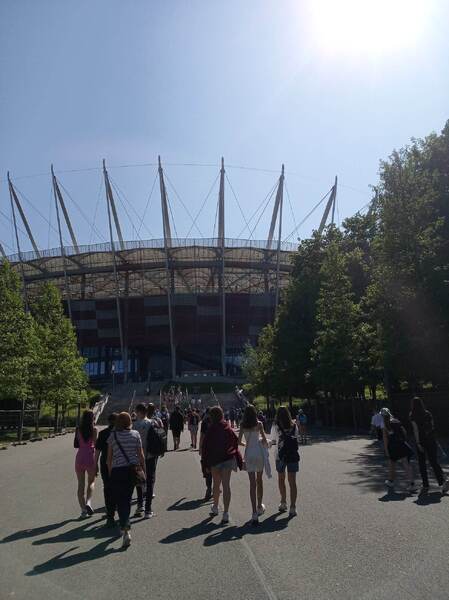 a także udaliśmy się na zwiedzanie Zamku Królewskiego. Po tej lekcji historii przejechaliśmy na Stadion Narodowy, który zwiedzaliśmy z przewodnikiem. Dzień zakończyliśmy wyjściem na spektakl teatralny pt. „Miłość w Saybrook” - w Teatrze 6. Piętro. Do hotelu wróciliśmy metrem.
