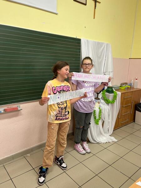 Uczniowie klas 4 przygotowali plakaty z hasłami promującymi zdrowy styl życia.