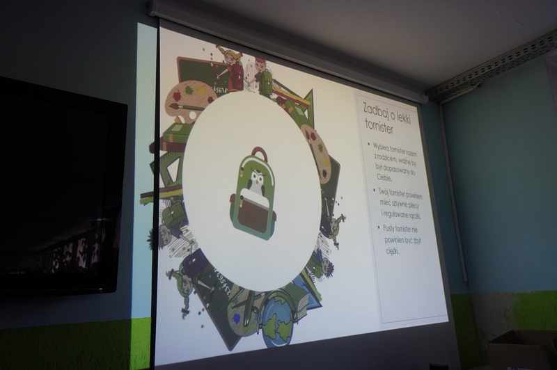 Uczniowie poznali również temat doboru właściwego tornistra, prawidłowego noszenia plecaka, zawartości tornistra i wpływu tych aspektów na pojawianie się wad postawy, które stanowią duży problem wśród dzieci i młodzieży i mogą wpływać na ich dorosłe życie.
