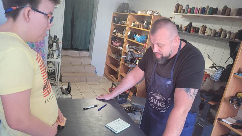 Drugim zawodem poznanym podczas realizacji zajęć w ramach innowacji pedagogicznej to zawód szewca. Uczniowie dokładnie obejrzeli zakład szewski. Szewc, pan Piotr, opowiedział o swojej pracy, pokazał wyposażenie oraz znajdujący się tam sprzęt. Uczniowie mieli możliwość zaobserwowania jak pan Piotr obsługuje klientów i przyjmuje od nich buty do naprawy. Dowiedzieli się, że nie tylko buty można naprawić w zakładzie, ale również torebki, walizki i że jest to zawód zanikający.