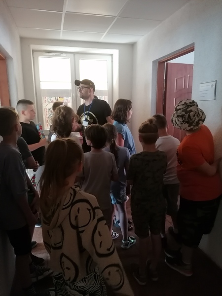 Celem wizyty było poznanie specyfiki ich zawodu oraz rozmowy na temat bezpieczeństwa podczas wakacji. Uczniowie utrwalili wiadomości na temat tego jak należy wzywać pomocy, do kogo najlepiej zwrócić się w przypadku problemów oraz jak korzystać ze zbiorników wodnych podczas letnich kąpieli.