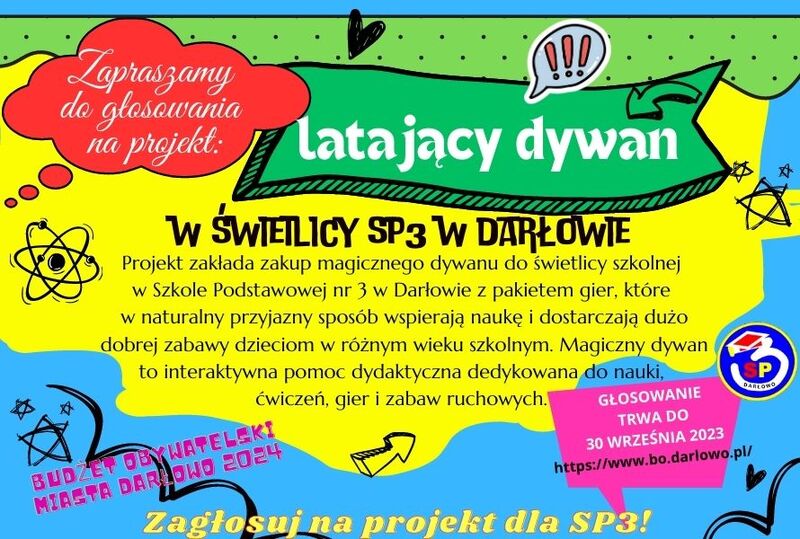 Zapraszamy do głosowania na projekt: LATAJĄCY DYWAN w świetlicy SP3 w Darłowie.