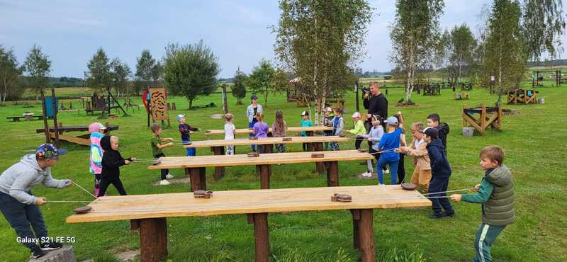 W piątek klasa 1d wybrała się na pierwszą klasową wycieczkę. Kierunek Leonardia - park edukacji i rozrywki. Celem wycieczki była integracja zespołu klasowego oraz zabawy na świeżym powietrzu. Park Leonardia to magiczne miejsce, które zaprasza wszystkich, bez względu na wiek, do odkrywania niezwykłego świata zabawy i rozrywki. Dzieci korzystały z interaktywnej wystawy zdobywając wiedzę i nowe umiejętności. Nie zabrakło wspólnych gier z piłką oraz chustą animacyjną. Znaleźliśmy również czas na odpoczynek i poczęstunek przy ognisku. Podczas pobytu odbył się konkurs strzelania z małej kuszy. Zwyciężczynią została Natalka, a każde dziecko zostało nagrodzone słodkim upominkiem. Radość dzieci była najlepszym znakiem dobrej zabawy. Pełni pozytywnej energii i nowych przyjaźni będziemy wypatrywać okazji do następnych przygód.