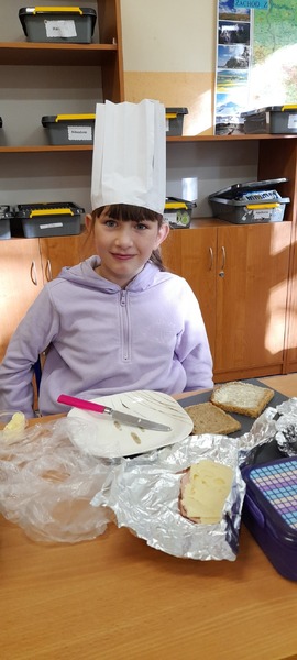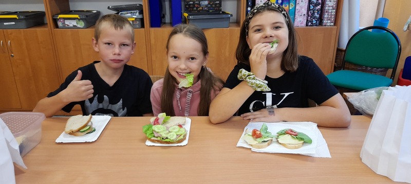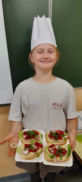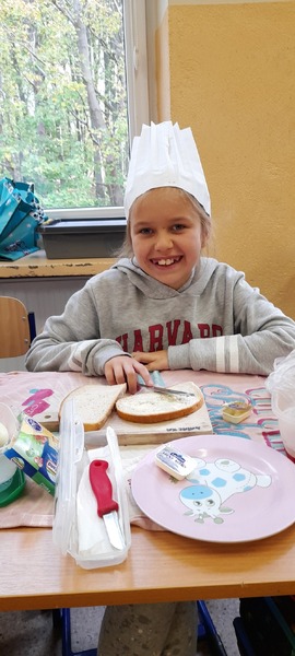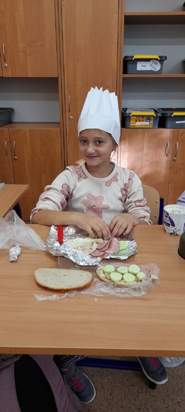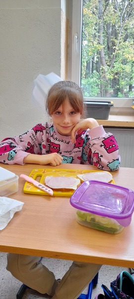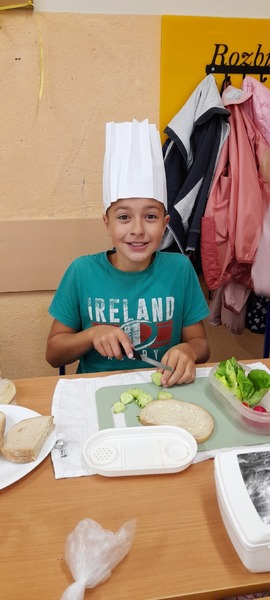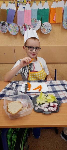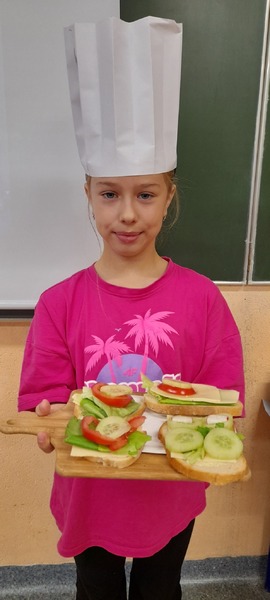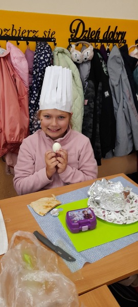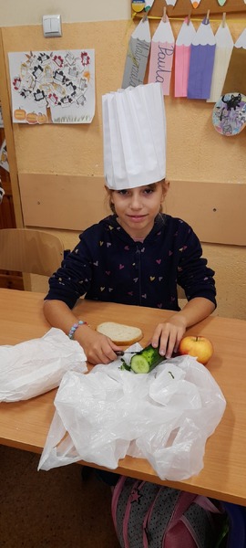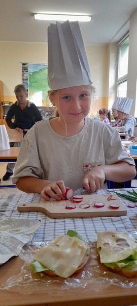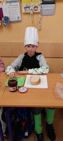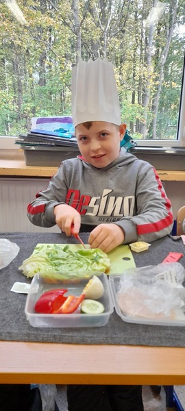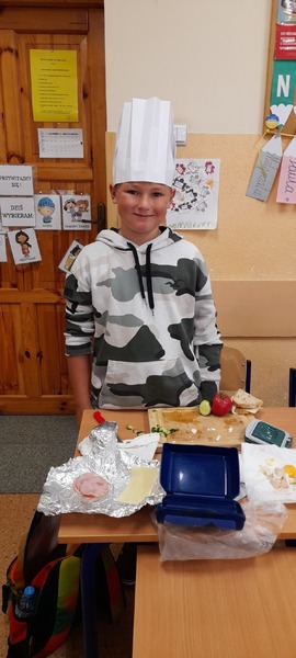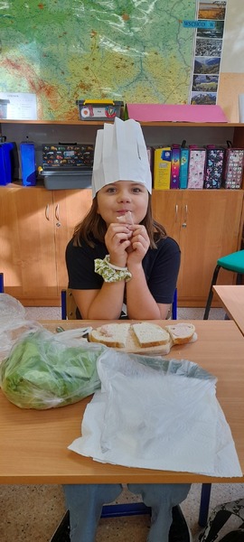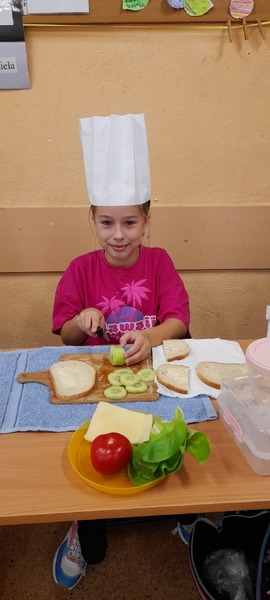 Nie ma to jak zdrowe i pożywne śniadanie! W poniedziałek 16 października z okazji Dnia Chleba - uczniowie klasy IIIe samodzielnie przygotowywali sobie śniadanie. Zanim jednak przystąpili do przyrządzania pysznych posiłków każdy z uczniów wykonał czapkę kucharską, dokładnie umył ręce i przygotował stanowisko pracy. Zapach świeżych warzyw i pysznych dodatków unosił się na całym szkolnym korytarzu. Zapraszamy na fotorelację z kulinarnych zmagań IIIe.