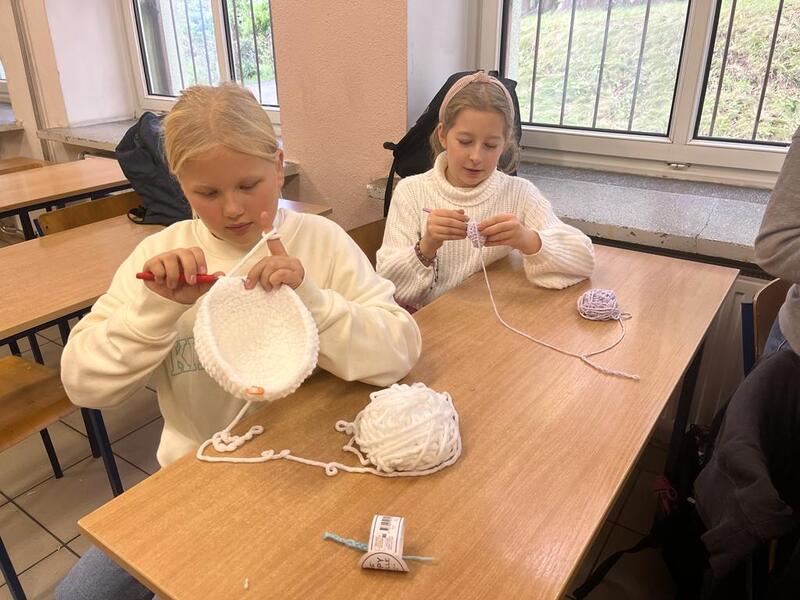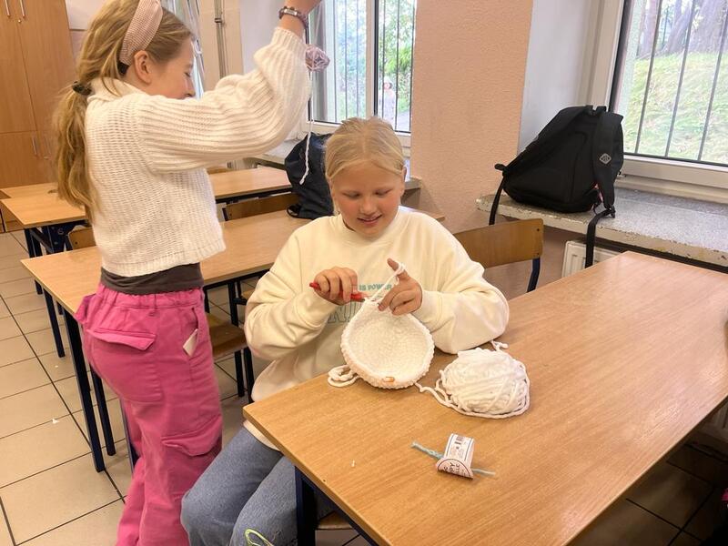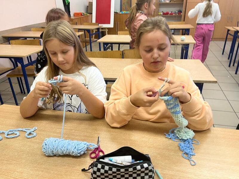 Od września w naszej szkole odbywają się zajęcia dziewiarskie w ramach projektu #LaboratoriaPrzyszłości. Uczennice klas 3-5 bardzo chętnie przystąpiły do działań i doskonalą swoje umiejętności. Powstają tu przede wszystkim zwierzątka, serwetki i inne ciekawe projekty. Podczas zajęć kształtują wytrwałość, cierpliwość i skupienie uwagi.