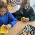 Uczennice szkolnego kółka krawieckiego poznały podstawy szycia i akcesoria krawieckie. Miały dziś możliwość wykorzystania nici i materiałów, ucząc się wykonywania prostych ściegów ręcznych i nawlekania nici. To wszystko oczywiście przy pomocy narzędzi i akcesoriów zakupionych w ramach projektu #LaboratoriaPrzyszlości