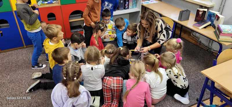 20 października 2023r. w ramach akcji Międzynarodowego Miesiąca Bibliotek Szkolnych „Cała Polska czyta dzieciom” gościliśmy w naszych szkolnych progach autorkę książek i opowiadań - Panią Kamilę Malec, która przeczytała nam fragment książki „Alicja w krainie czarów”.