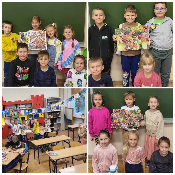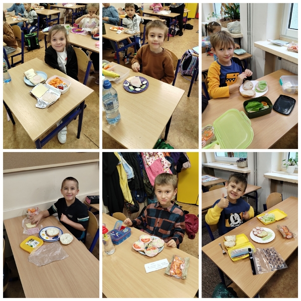 Uczniowie uzmysłowili sobie jak ważne w diecie człowieka są warzywa i owoce. Podczas pracy w grupach, wykonali plakaty promujące zdrowe przekąski. Chętni uczniowie wcielili się aktorów i odegrali scenkę do wiersza „Warzywa” Juliana Tuwima. Pierwsze role wzbudziły w dzieciach wiele pozytywnych emocji. A największą radość sprawiły samodzielnie przygotowane kanapki.