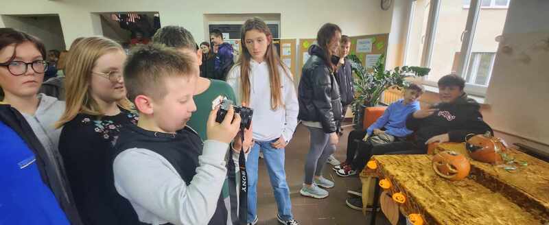 Dlatego 26.10. br. uczniowie z klasy 6E mieli okazję poznać techniczne podstawy fotografii, obsługi podstawowych funkcji aparatu, wykorzystania światła i rekwizytów do zdjęcia.