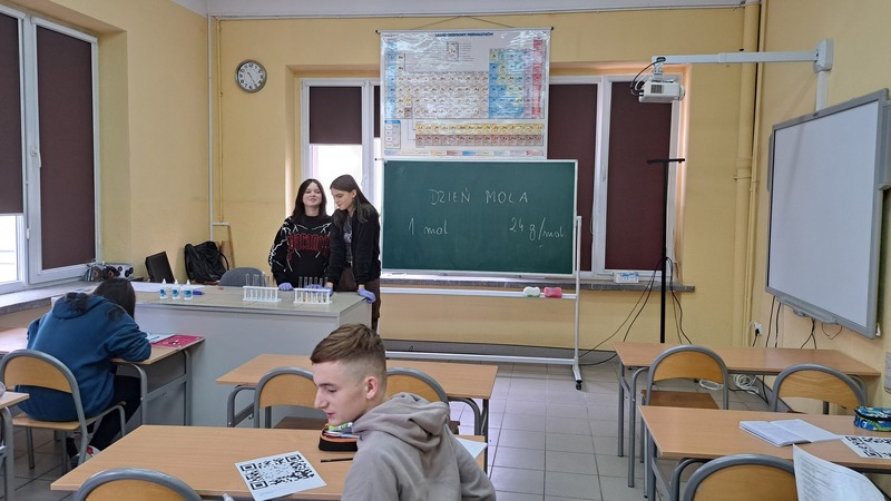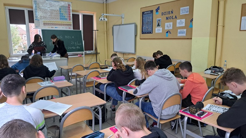 23 października, na całym świecie obchodzony jest Dzień Mola. Data wiąże się z wartością liczby Avogadra, której odkrycie i wprowadzenie zrewolucjonizowało chemię i inne nauki eksperymentalne. Uczniowie klas ósmych poznali historię mola, od hipotezy przez jego wprowadzenie i wykorzystanie kiedyś i dziś. Uczestniczyli w pokazie eksperymentalnym, rozwiązywali łamigłówki wykorzystując TIK oraz obliczali, ile moli użyto lub otrzymano w wyniku podanych reakcji chemicznych. Na koniec wykonali plakaty utrwalające zdobytą wiedzę.