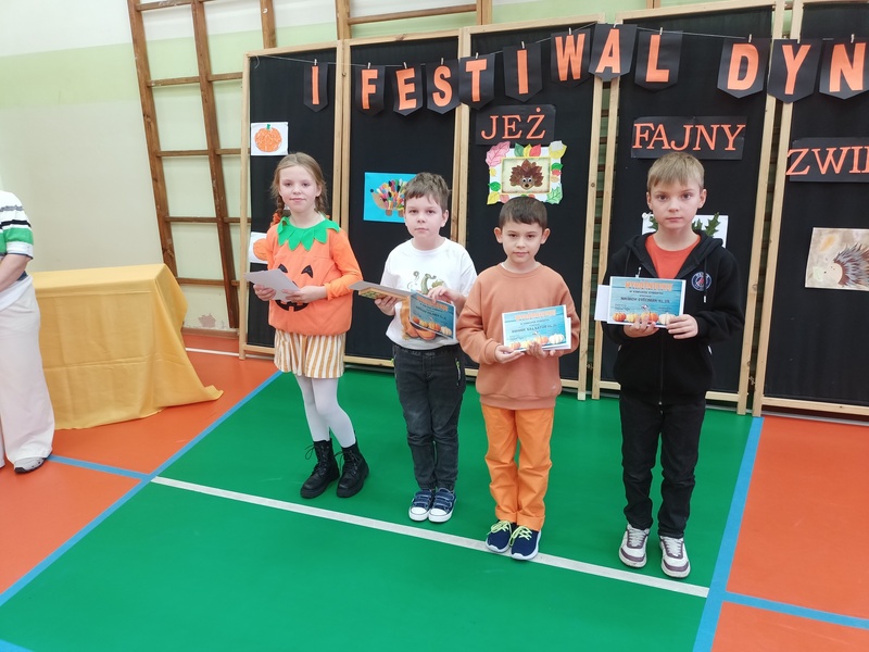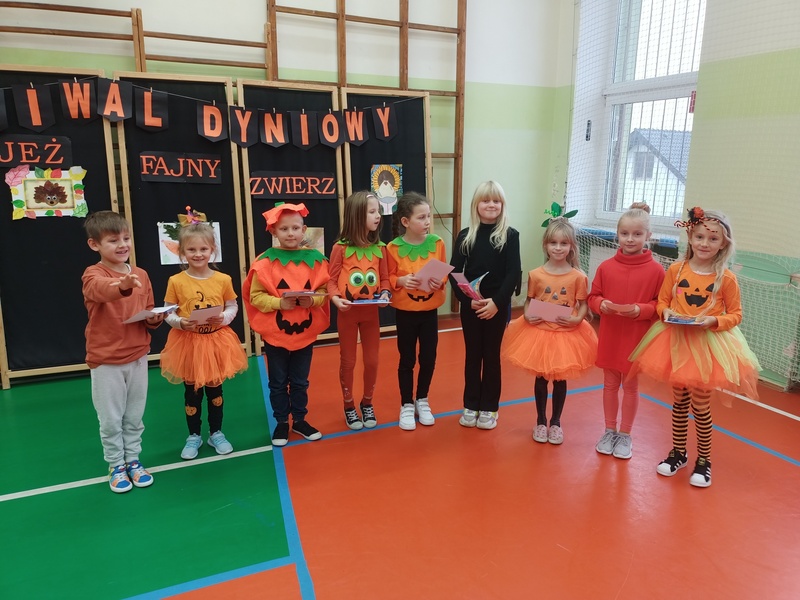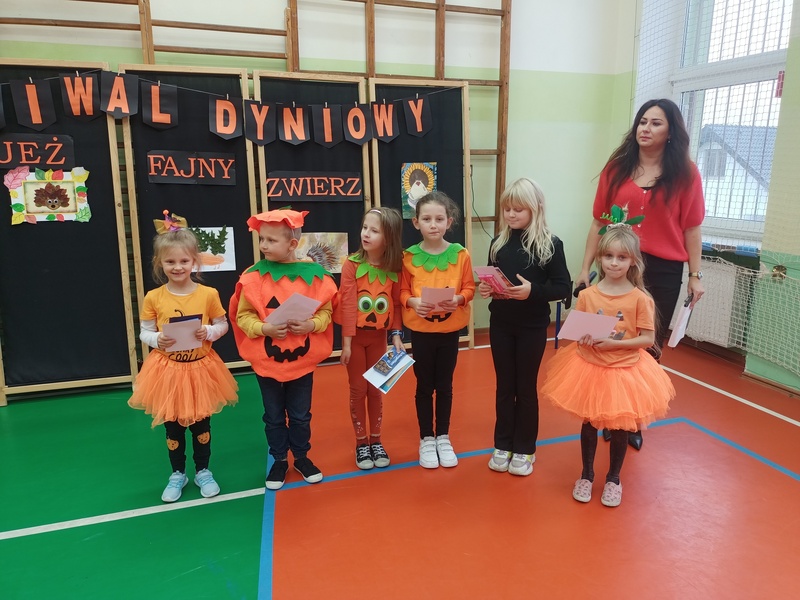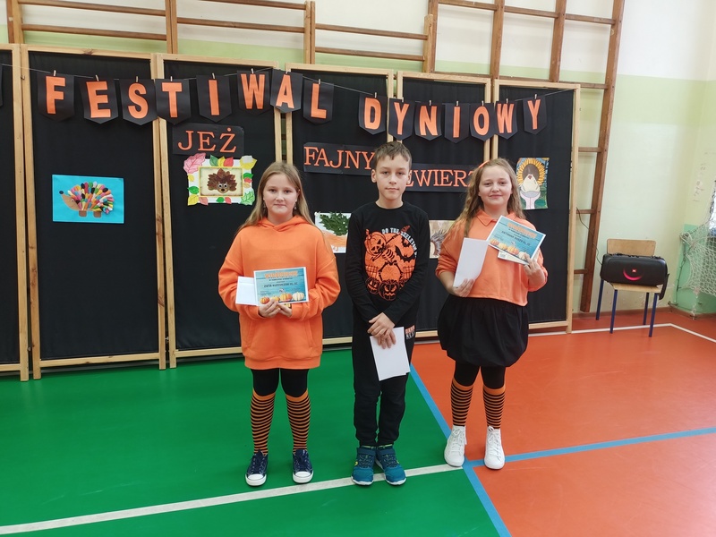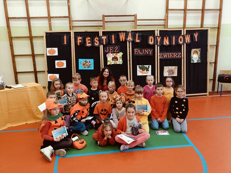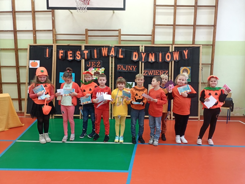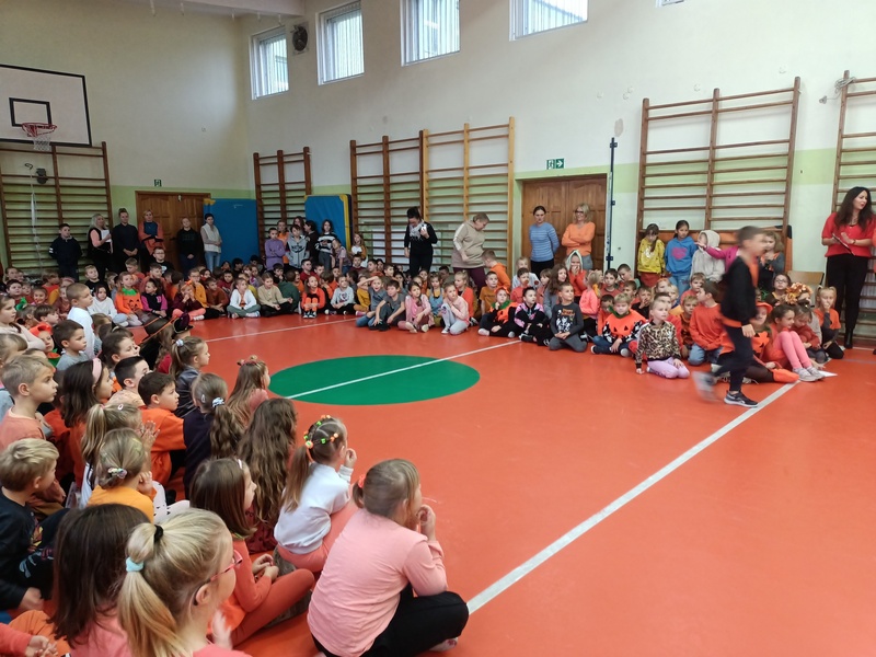Dyniowo Mi - czyli dzień na pomarańczowo, który odbywał się w naszej szkole we wtorek 31.10.23 r. był także dniem ogłoszenia wyników Konkursu Dyniowego. Na uroczystym apelu pojawiły się wszystkie klasy 1-3 z wychowawcami, uczniowie klas 4-8 biorący udział w Konkursie Dyniowym, a także laureaci konkursu „Jeż fajny zwierz”.