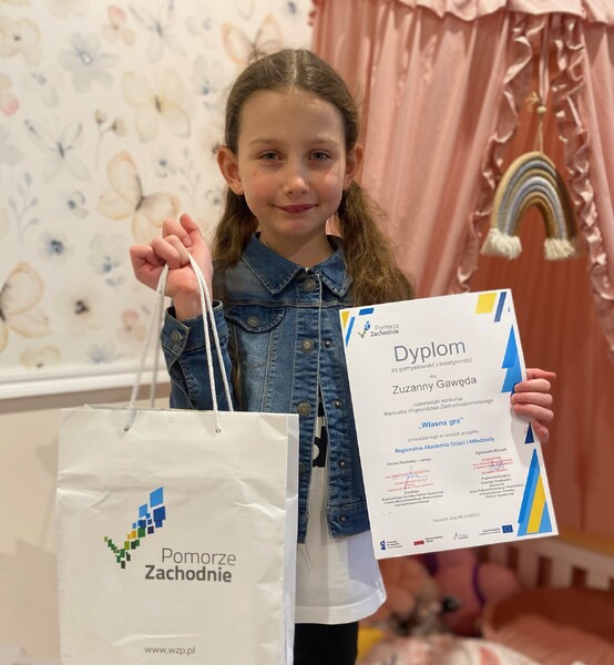 Miło nam poinformować, że uczennica naszej szkoły Zuzanna Gawęda z kl. 1A wzięła udział w konkursie organizowanym przez Marszałka Województwa Zachodniopomorskiego prowadzonego w ramach projektu Regionalna Akademia Dzieci i Młodzieży pt. „Własna gra” i otrzymała dyplom za pomysłowość i kreatywność.