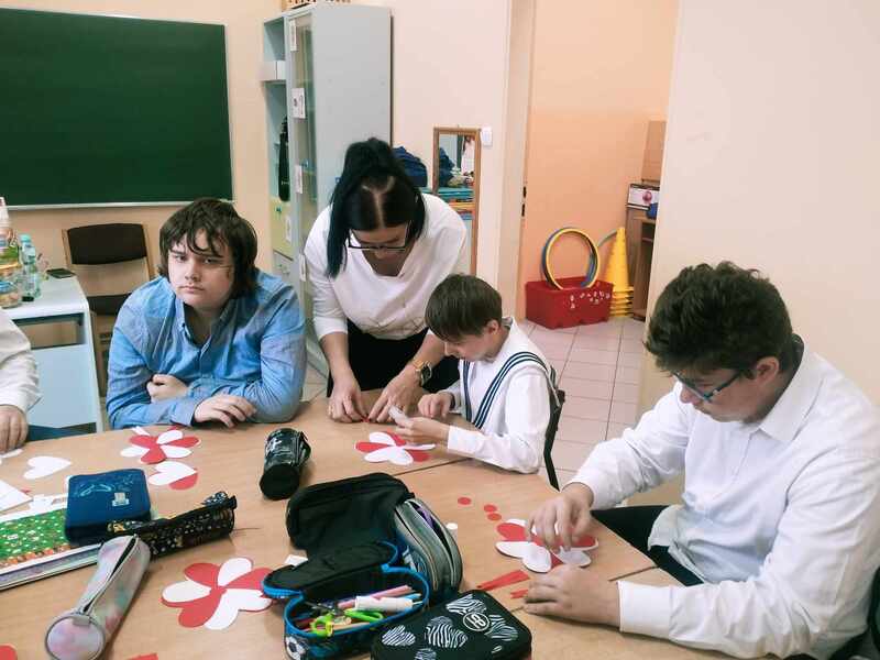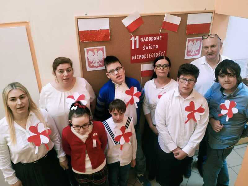 W związku z przypadającym w sobotę Dniem Niepodległości, w piątek 10 listopada zorganizowane zostały zajęcia upamiętniające to święto, w których wzięli udział uczniowie ze specjalnymi potrzebami edukacyjnymi. W trakcie przeprowadzonej lekcji dzieci wykonały kotyliony oraz po obejrzeniu filmu edukacyjnego odpowiadały na pytania związane z historią Polski i symbolami narodowymi.