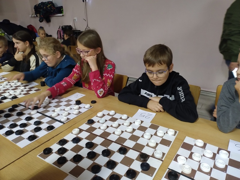 Dnia 15 listopada Świetlica w Jeżycach gościła 68 zawodników, którzy spotkali się przy deskach warcabowych, aby rozegrać ostatni turniej Ligi warcabowej 2023. Rundy rozgrywane były w systemie szwajcarskim. W tym dniu najlepszym zawodnikiem okazał się Jakub Wójcik, uczeń klasy 6C, który uplasował się na miejscu I. Wielkie gratulacje!