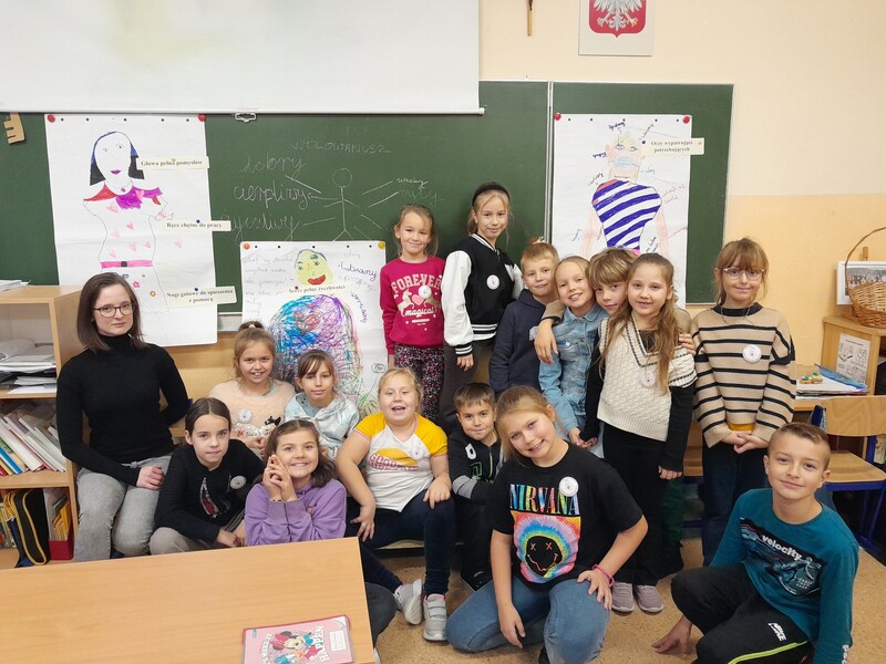 W piątek, 17 listopada najmłodsi wolontariusze darłowskiej Trójki uczestniczyli w zajęciach pt. „Co to znaczy być wolontariuszem?” prowadzonych przez panią Angelikę Derasiewicz z Darłowskiego Centrum Wolontariatu. Uczniowie pracując w grupach tworzyli portrety i charakterystyki wolontariusza. Wspólnymi siłami wypracowali model bohatera, jakim sami pragną się stać udzielając bezinteresownej pomocy w środowisku szkolnym i lokalnym.