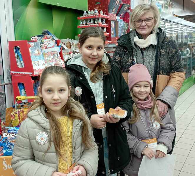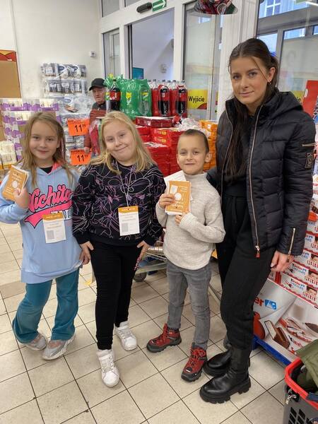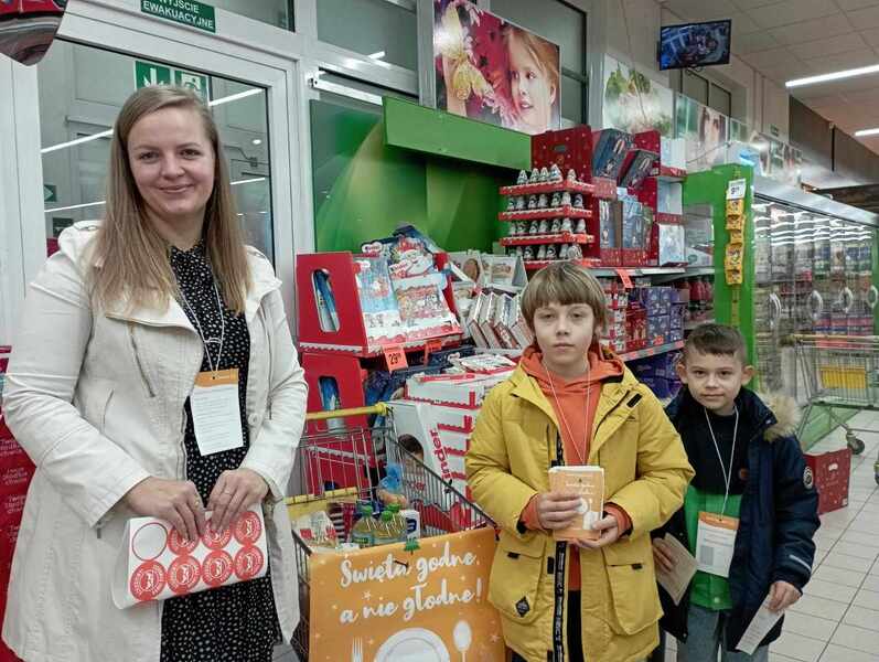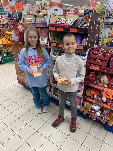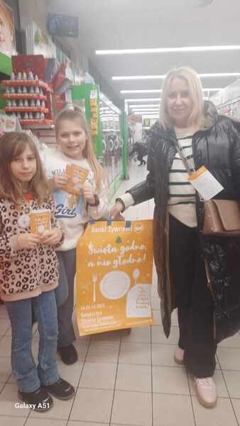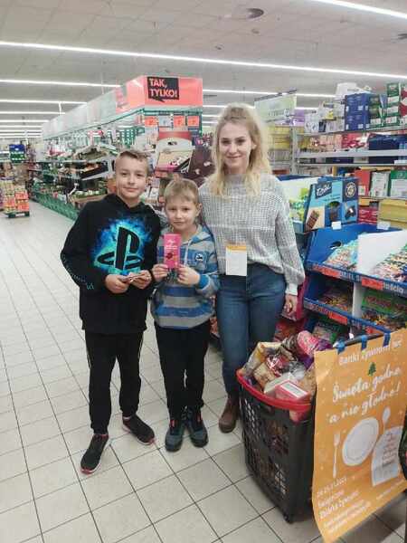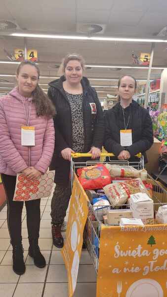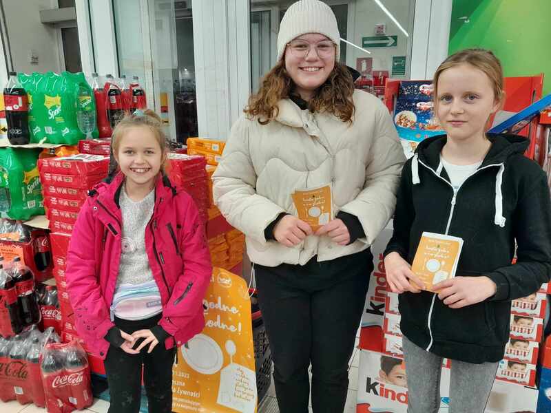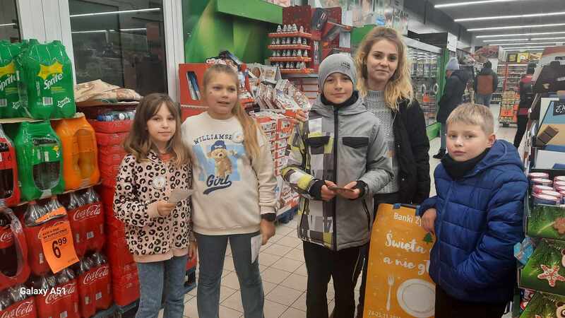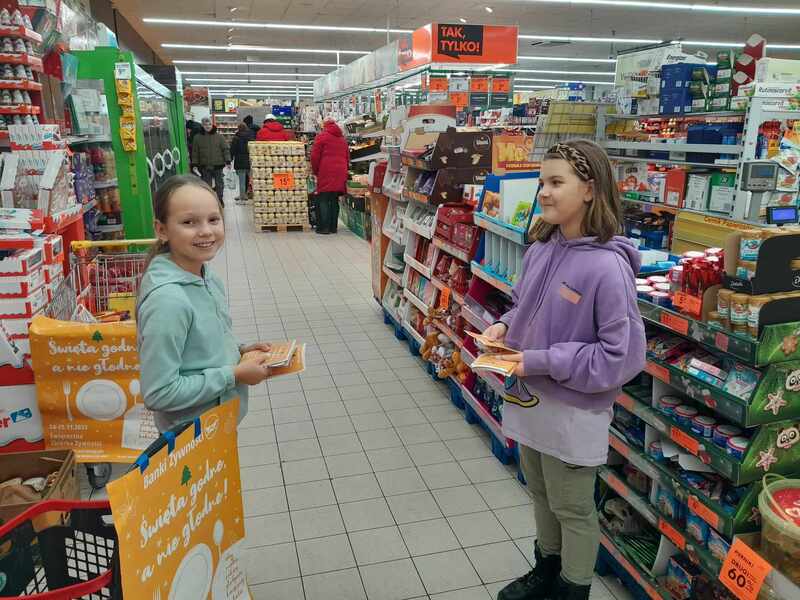 24 i 25 listopada wolontariusze Szkolnego Klubu Wolontariusza „Pomocna dłoń” uczestniczyli w zbiórce żywności organizowanej przez Bank Żywności przy współpracy z Darłowskim Centrum Wolontariatu i Miejskim Ośrodkiem Pomocy Społecznej w Darłowie. Pod hasłem „Święta godne, a nie głodne” rozpoczęła się 26. edycja Świątecznej Zbiórki Żywności, gdzie nie mogło zabraknąć naszych pomocników. Wolontariusze wytrwale i skutecznie radzili sobie z zachęcaniem klientów darłowskich marketów Biedronka do zakupu dodatkowych produktów, którymi wsparli akcję. Praca dzieci zaowocowała hojnie wypełnionymi koszami żywności. Sami wolontariusze spotkali się z dużą życzliwością i ofiarnością darczyńców. Zebrana żywność zostanie przekazana potrzebującym osobom i instytucjom w naszym rejonie.