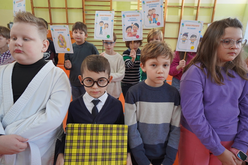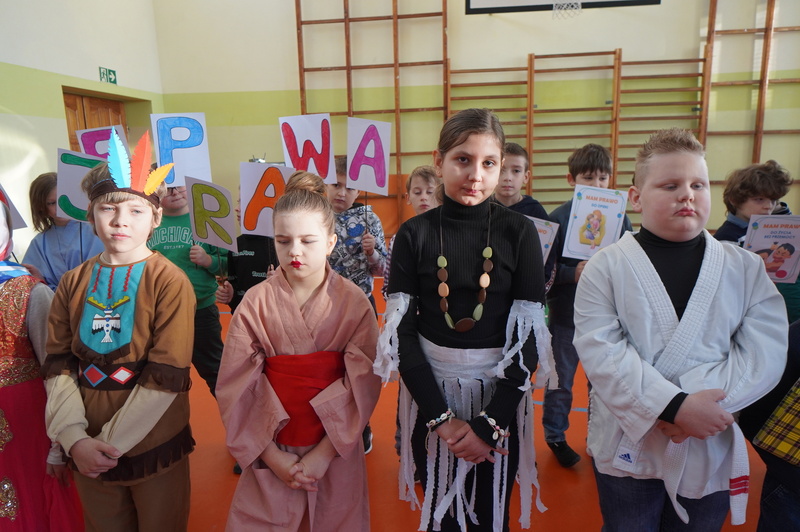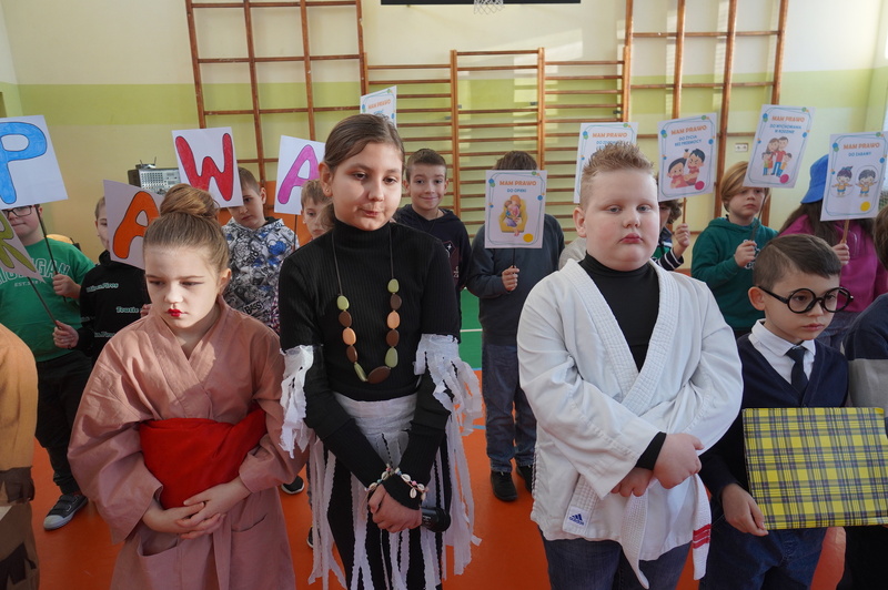 Z tym hasłem uczniowie z klasy 3A i 3C wspólnie z wychowawczyniami wystąpili na apelu poświęconym Prawom Dziecka. Głównym celem tego spotkania było uświadomienie społeczności szkolnej o najważniejszych prawach dziecka. Dziewczęta i chłopcy w emocjonujący sposób opowiadali o prawie do wyrażania swoich opinii i bycia słuchanym, o konieczności szacunku dla innych, o prawie do miłości, szczęścia oraz opieki dorosłych. Dzieci podkreślały, że mają prawo do edukacji bez względu na pochodzenie czy zdolności oraz prawo do bezpiecznego i przyjaznego środowiska szkolnego.