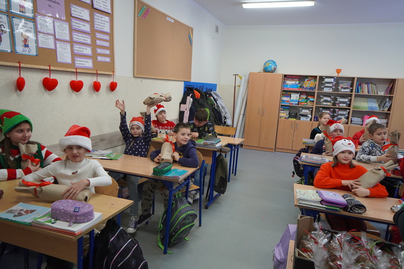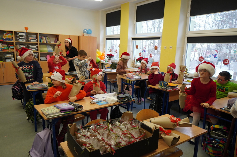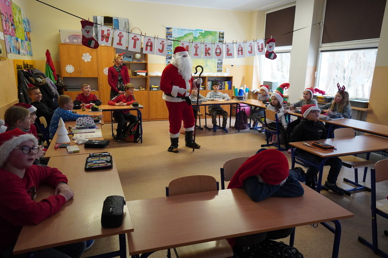 Z tej okazji do naszej szkoły przybyli Mikołaje, aby obdarować grzeczne dzieci prezentami i sprawić, aby każdy w tym dniu poczuł się wyjątkowo.