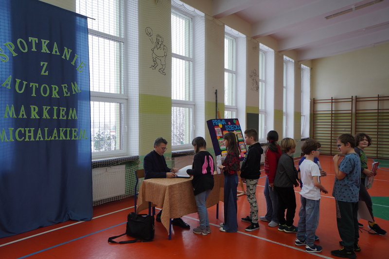 W spotkaniu wzięli udział uczniowie klas trzecich i czwartych. Wszyscy z uwagą oraz zainteresowaniem słuchali autora. Żywo reagowali i zadawali pytania.