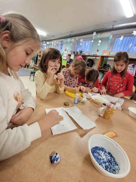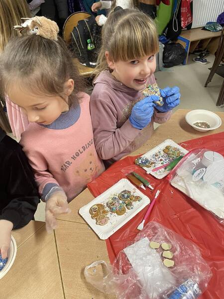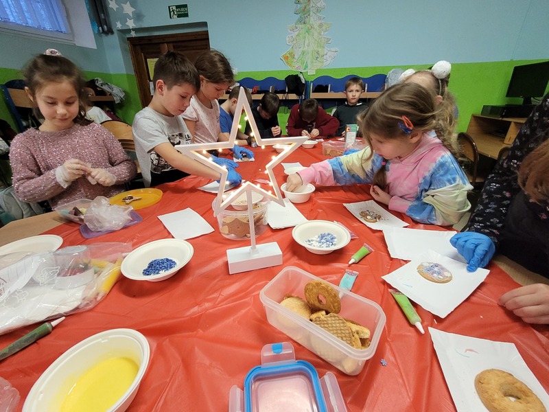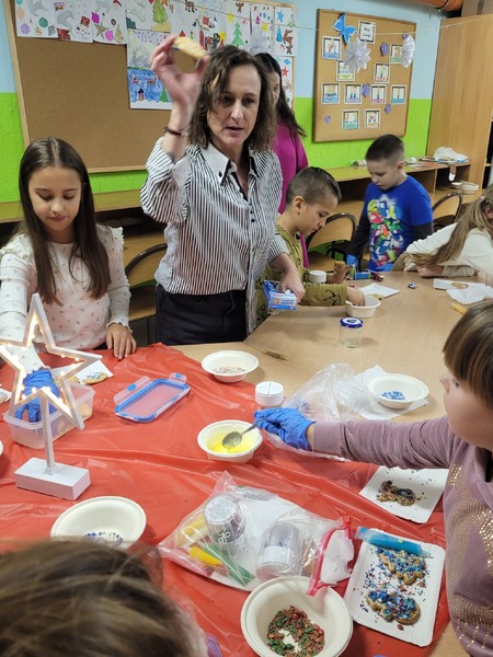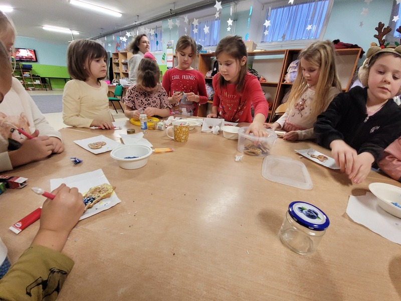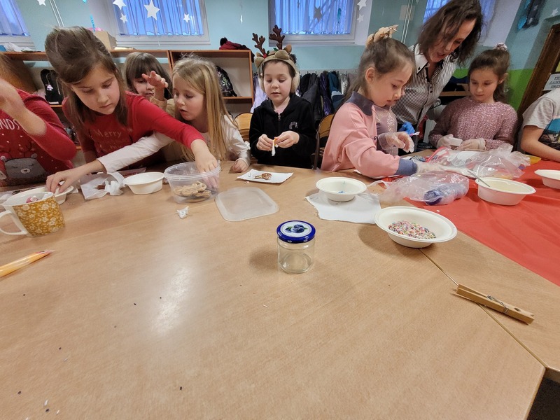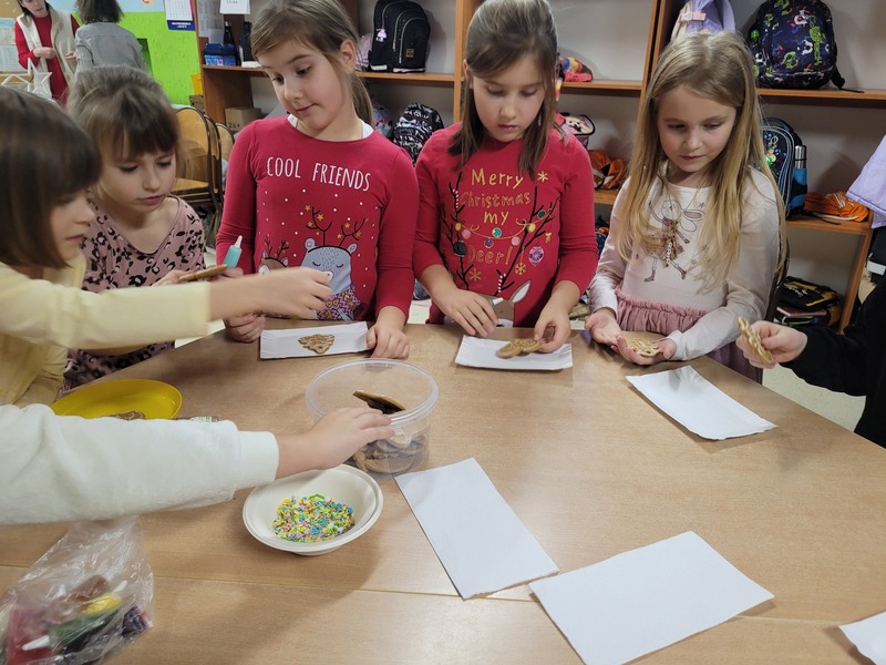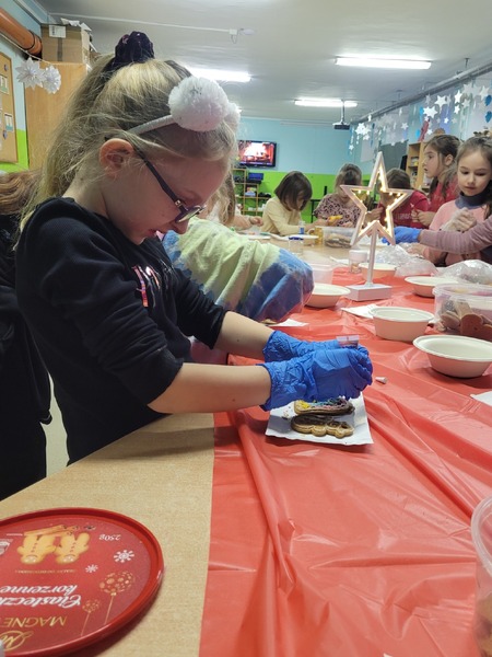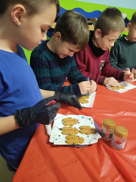 Każdy powód do wspólnego spędzenia czasu jest dobry, a w szczególności, okres świąteczny, gdzie wszyscy chętnie zabierają się do pracy i świątecznych przygotowań. W świetlicy szkolnej dbamy o utrzymanie tradycji świątecznych, stąd też dzieci ochoczo zabrały się do ozdabiania ciasteczek. Praca lekka, pożyteczna i jaka smaczna. Uczestnikom zajęć towarzyszył świąteczny klimat i muzyka. Oto efekty ich pracy: