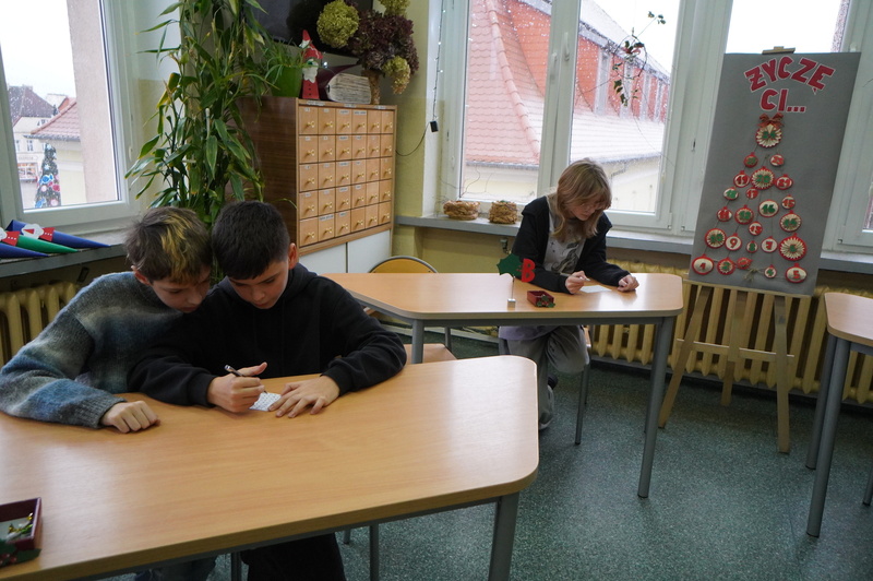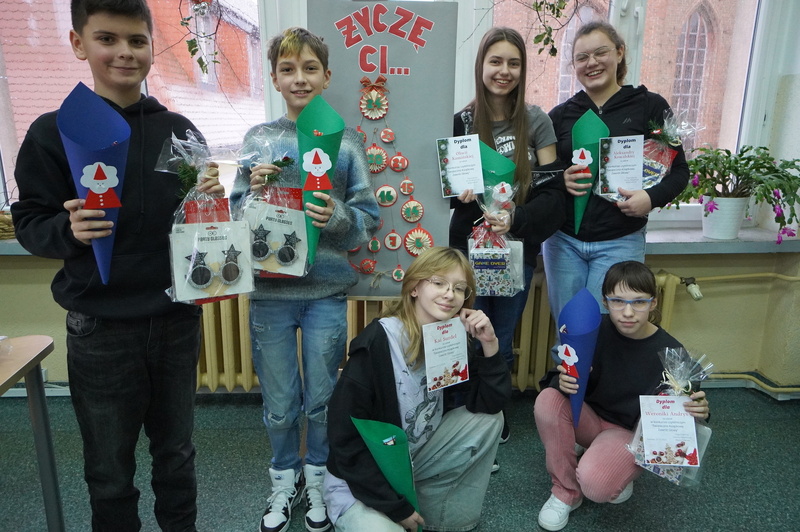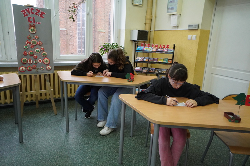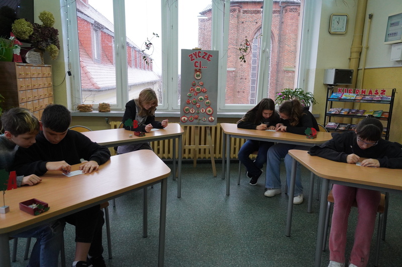 Tradycyjnie jak co roku w bibliotece szkolnej odbył się konkurs bożonarodzeniowy dla klas szóstych pod hasłem „Świąteczno-Książkowy Zawrót Głowy”. W związku z tym uczniowie bawili się rozwiązywaniem różnego rodzaju krzyżówek, łamigłówek, wykreślanek i innych formy zadań konkursowych.