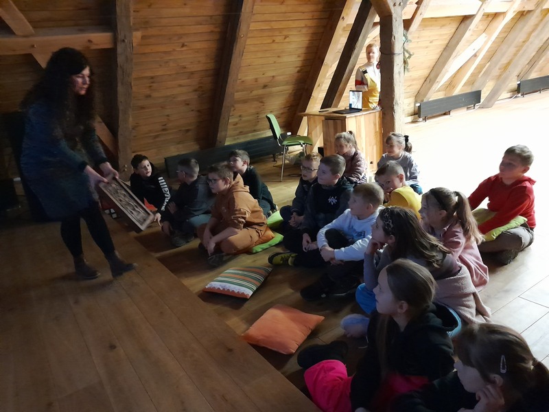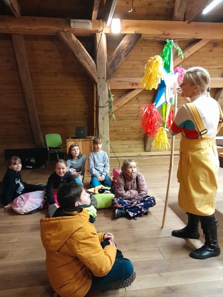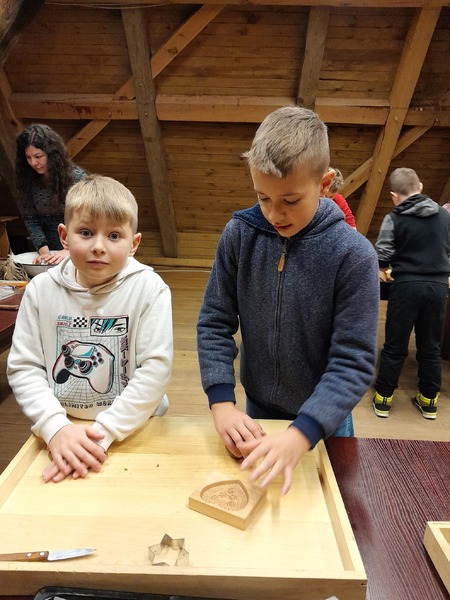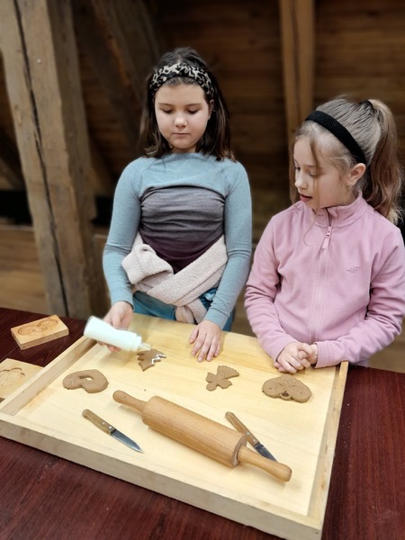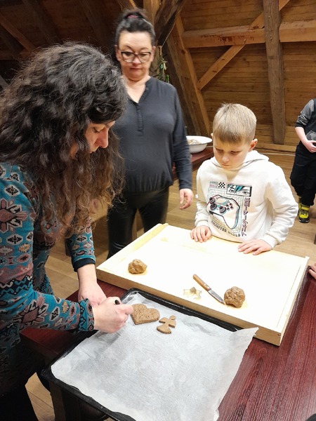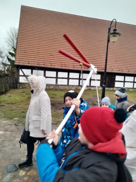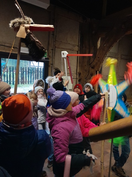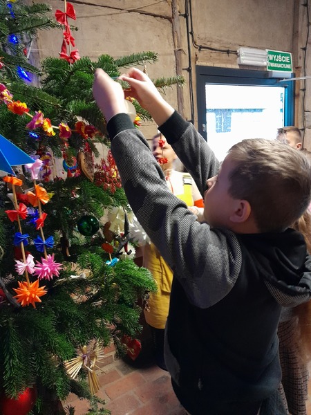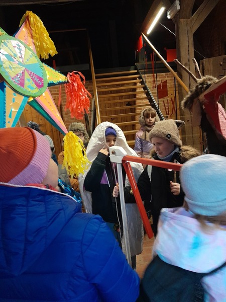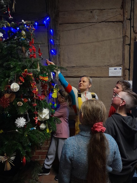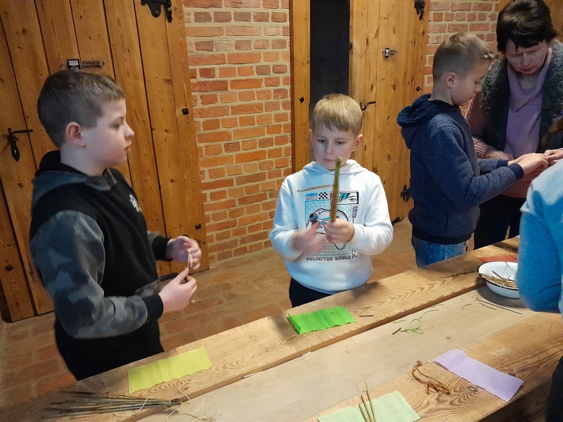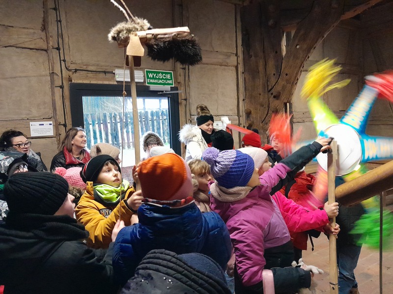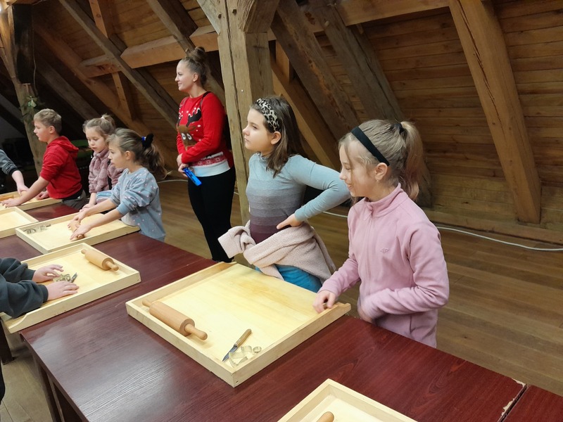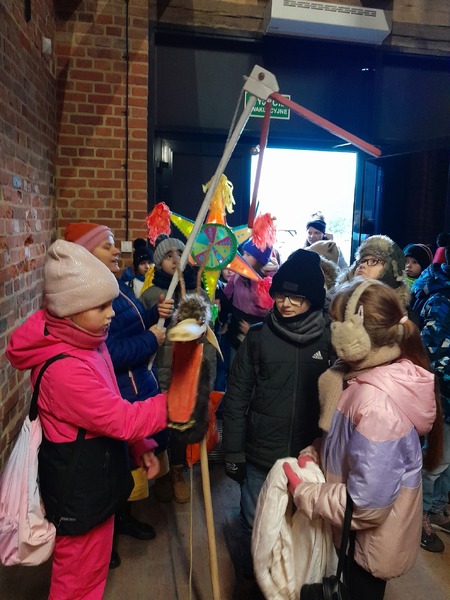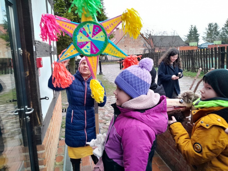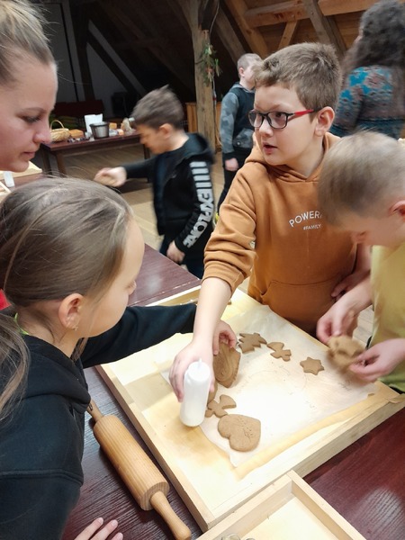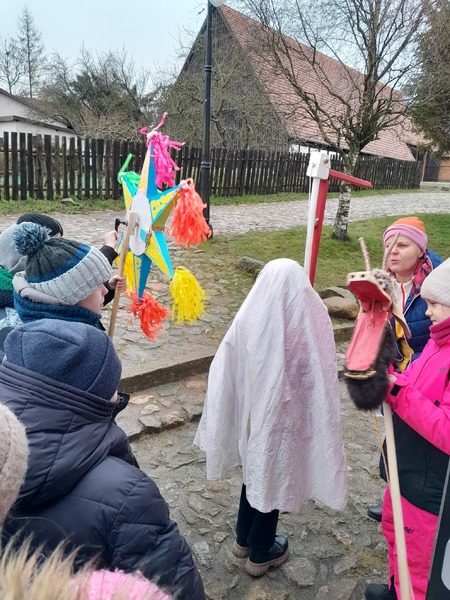 21 grudnia 2023r., uczniowie klasy 3E uczestniczyli w warsztatach świątecznych w Muzeum Kultury Ludowej Pomorza w Swołowie. Niczym „Kolędnicy - wędrownicy” z gwiazdą na patyku, turoniem i bocianem wędrowali przez wiejskie zagrody i radośnie śpiewali o narodzeniu Dzieciątka. Poznali tradycje kolędowania, ludowe przyśpiewki i życzenia, którymi dawniej pozdrawiano się w okresie bożonarodzeniowym. Dzieci uczestniczyły w zajęciach kulinarnych przygotowując pierniki. Poznały obrzędy i symbolikę piernika kaszubskiego. Uczestniczyły także w zajęciach plastycznych, na których wykonały słomkowego anioła.