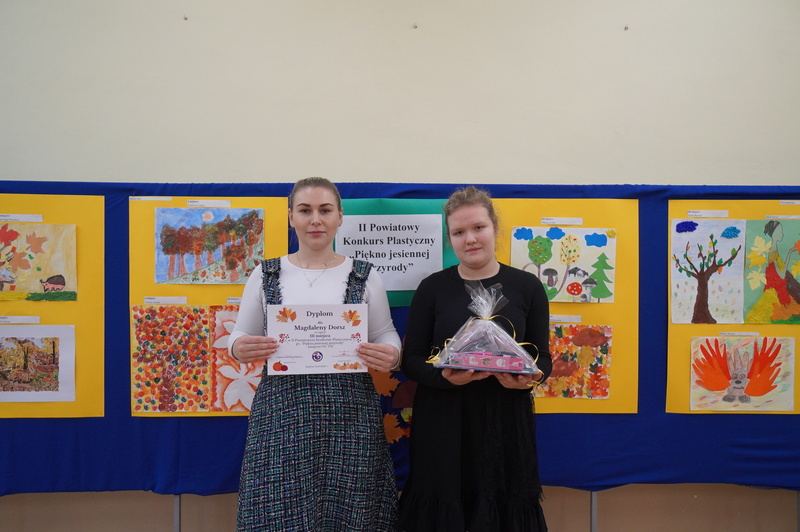 2.01.2024 r. odbyło się uroczyste spotkanie, podczas którego zostały rozdane nagrody i dyplomy laureatom i wyróżnionym w II Powiatowym Konkursie Plastycznym „Piękno jesiennej przyrody”.