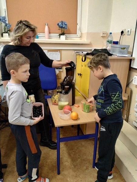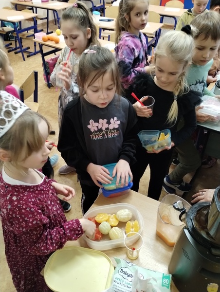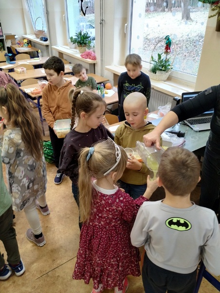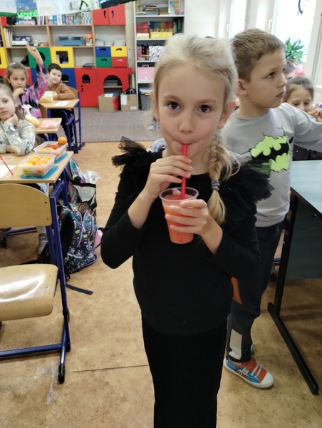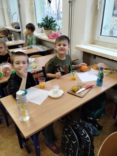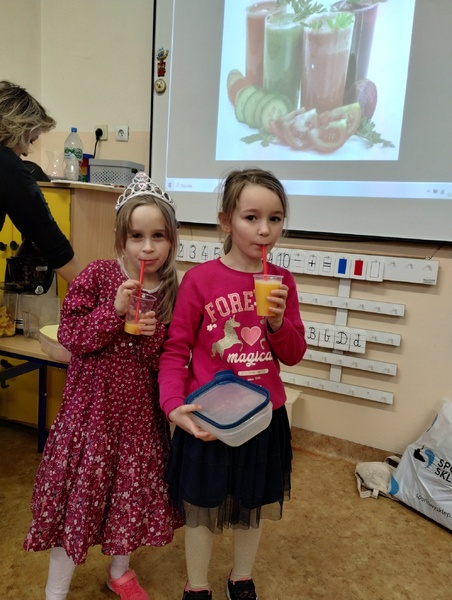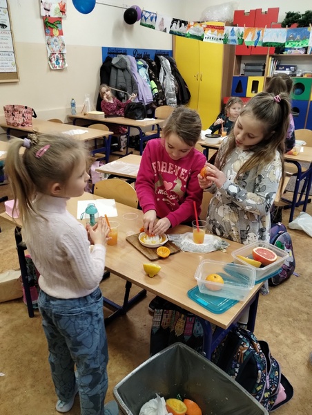 Wiemy o tym, że warzywa i owoce powinny stanowić przynajmniej połowę spożywanych przez nas pokarmów. Proporcja pomiędzy spożyciem warzyw i owoców wynosi 3:1. Niestety często słyszymy, że czegoś nie lubi nasza pociecha. Mamy na to super sposób. Przeciery i soki, to dobra metoda na przemycenie czegoś co nasze dzieci nie lubią. Korzystając z okazji wprowadzania literki C, c - jak cytrusy, postanowiłyśmy to sprawdzić. Do soków cytrusowych dzieci eksperymentalnie dorzucały warzywa co przyniosło świetną zabawę, ale też niebywałe osiągnięcie do przełamywania swojej niechęci do różnych warzyw. Domowy sok z cytrusów to świetny przykład niezwykłych właściwości całkiem zwykłych owoców dający nam tyle drogocennych wartości.