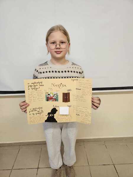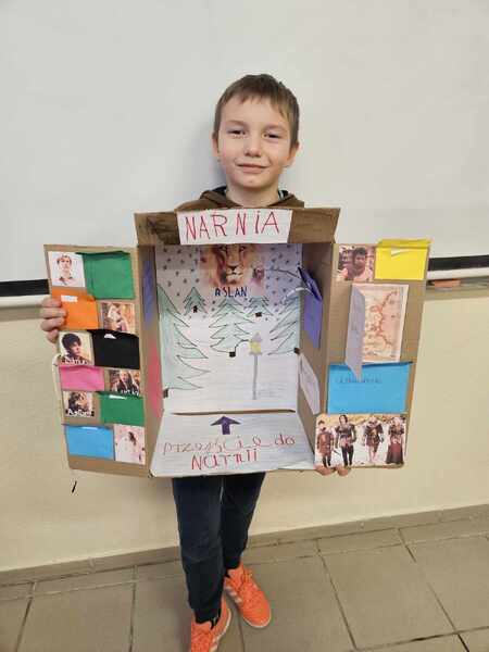 Uczniowie klasy IV c i IV d po omówieniu lektury: „Opowieści z Narnii. Lew, Czarownica i Stara Szafa” C.S. Lewisa włączyli się w realizację projektu edukacyjnego, który zakładał wykonanie lapbooka, czyli albumu, teczki tematycznej z informacjami na temat treści przeczytanego utworu. Uczniowie, przed przystąpieniem do realizacji zadania, na zajęciach, podali swoje pomysły na wykonanie prac, sporządzili dokładny plan działania. Na realizację projektu mieli trzy tygodnie. Następnie swoje prace zaprezentowali i omówili wspólnie z nauczycielem na lekcji języka polskiego.