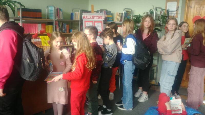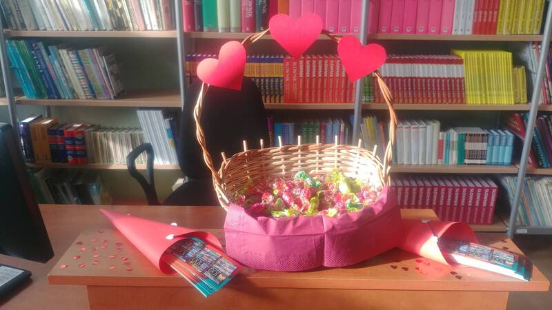 Święto zakochanych przypadające 14 lutego jest dobrym pretekstem do okazania miłości... także tej do książek. Doskonale wiedzą o tym uczniowie naszej szkoły, którzy tłumnie odwiedzili obie biblioteki. Oprócz serduszkowych dekoracji na czytelników czekały wystawy książek z motywem miłości i przyjaźni. Wszyscy wypożyczający książki tego dnia otrzymali słodkie niespodzianki i zakładki do książek. Walentynki w bibliotece cieszyły się dużym zainteresowaniem, dlatego świętowanie trwało cały dzień.