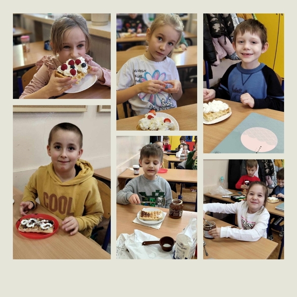Przyjemność wynikająca ze wspólnego doświadczania smaków, zapachów i barw sprawia niezaprzeczalną radość dostępną na wyciągnięcie ręki. Warto zatem w procesie edukacyjno-wychowawczym dzieci pamiętać o mocy, którą dają warsztaty kulinarne. Dzisiaj klasa I D korzystała z tej metody przy wprowadzaniu i utrwalaniu litery G, g jak gofry. Utrwalanie liter z dzieckiem może być przyjemnym, satysfakcjonującym doświadczeniem, ale również i dobrą zabawą i niezapomnianym wydarzeniem.