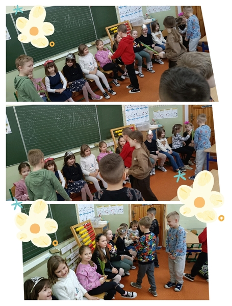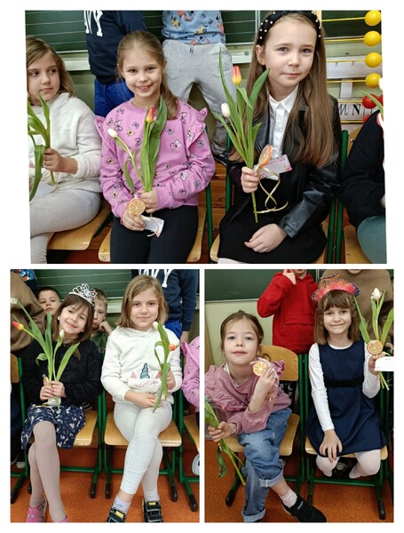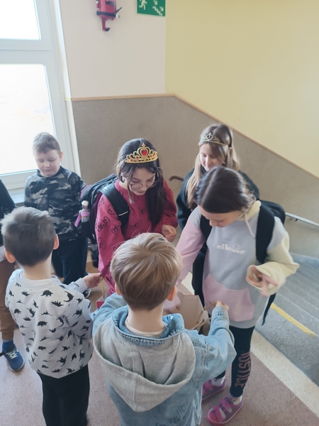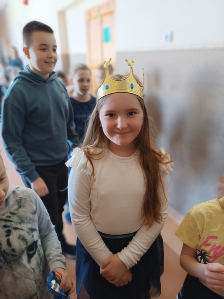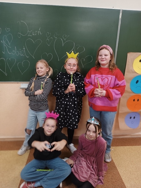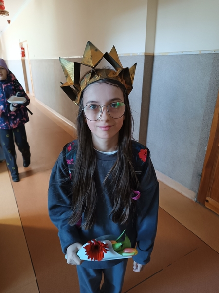 Wszyscy panowie, ci mali i ci więksi sprawili, że wszystkie panie poczuły się wyjątkowe! Na każdą nauczycielkę czekał piękny tulipan i słodki poczęstunek. Dziewczynki otrzymywały cukierki oraz kartki z ciekawostkami związanymi z historią Międzynarodowego Dnia Kobiet oraz krótkim rysem historycznym słynnych i zasłużonych kobiet. Samorząd Uczniowski na ten dzień ogłosił również akcję „Z koroną jesteś pod ochroną” - każda z dziewcząt, która miała na głowie koronę lub diadem była zwolniona z „odpytywania”.