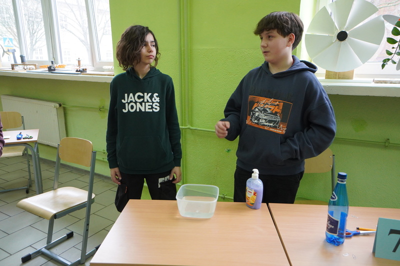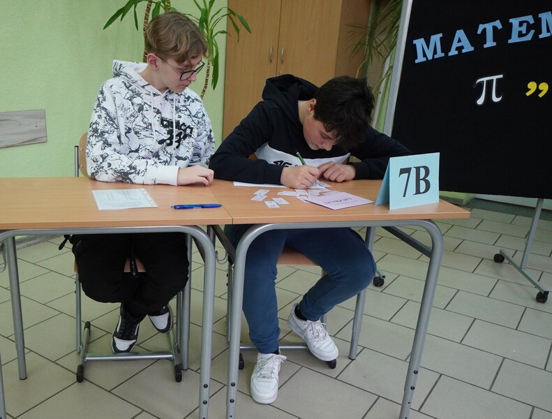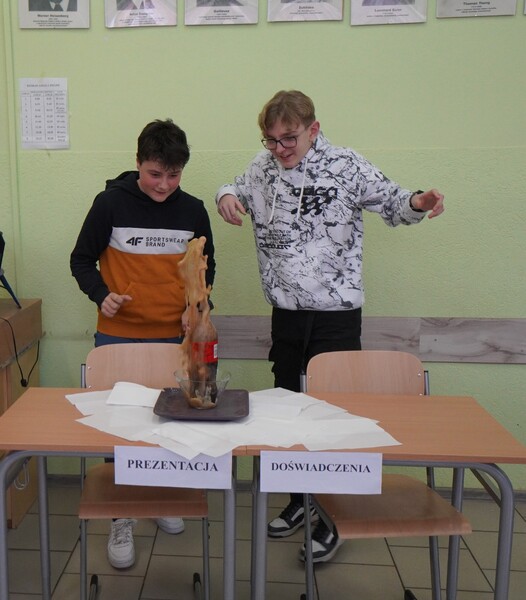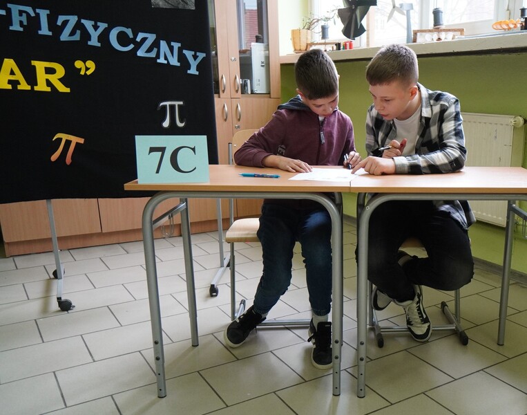 Świętowanie zaczęliśmy od krzyżówki matematycznej. Kolejne konkurencje to łamigłówka fizyczna oraz domino matematyczne dotyczące wyrażeń algebraicznych. Dalsza część obchodów to konkurs na zapamiętanie najdłuższego rozwinięcia liczby Pi. Siódmoklasiści zabawili się również w Młodych Einsteinów i zaprezentowali ciekawe doświadczenia fizyczne. W interesujący sposób zostały przedstawione doświadczenia, tj. latająca torebka herbaty, bezwładność jajka, pływający spinasz i napięcie powierzchniowe oraz wybuch wulkanu.