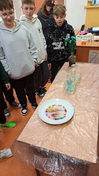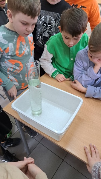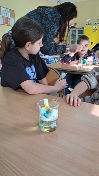 Młodsi uczniowie, w ramach lekcji biologii i przyrody, poznawali niezwykłe właściwości wody oraz poszerzali wiedzę na temat jej roli i znaczenie w życiu człowieka. Uczennice koła biologicznego zaprezentowały swoim kolegom ciekawe doświadczenia fizyko-chemiczne, a uczennice koła chemicznego przygotowały zajęcia dla uczniów klasy 3C.