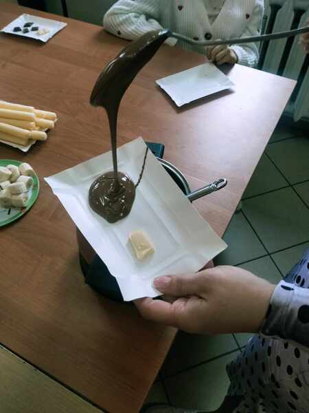 12.04. br. nasi uczniowie brali udział w obchodach dnia czekolady. Na początku zajęć dowiedzieli się paru ciekawostek o czekoladzie, następnie degustowali różne rodzaje czekolady. Główną atrakcja zajęć było czekoladowe fondue. Wspólne świętowanie sprawiło dzieciom wiele radości.