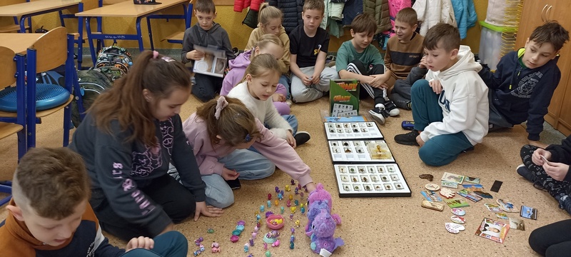 Coraz więcej dzieci odkrywa radość zbierania różnych przedmiotów, od naklejek po karty do gier czy figurki. Ta pasja nie tylko dostarcza przyjemności, ale także wspiera rozwój dziecka. Zbieranie różnorodnych przedmiotów rozwija zdolności organizacyjne oraz pomaga w nauce cierpliwości i samodyscypliny. Dzieci uczą się również szacunku do rzeczy, dbałości o nie oraz odpowiedzialności za swoje zbiory. Ponadto, mogą stanowić świetną okazję do budowania więzi rodzinnych, gdyż często rodzice wspierają swoje dzieci w ich pasji kolekcjonowania. Uczniowie klasy 2A, zainspirowani kolekcją, którą mieli bohaterowie lektury „Piecyk, czapeczka i budyń” Anny Onichimowskiej, postanowili pokazać swoje zbiory. W kolekcjach dzieci znalazły się: bursztyny, karty Pokemon, magnesy na lodówkę, figurki kotków, piesków, koni, monety z różnych stron świata, gry planszowe, owady i pajęczaki umieszczone w żywicy oraz piłeczki kauczukowe. Poprzez kolekcjonowanie, dzieci zyskują wiele korzyści emocjonalnych i intelektualnych. Dlatego warto zachęcać młodych ludzi do eksplorowania tej fascynującej formy hobby.