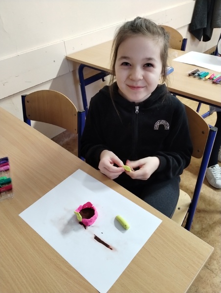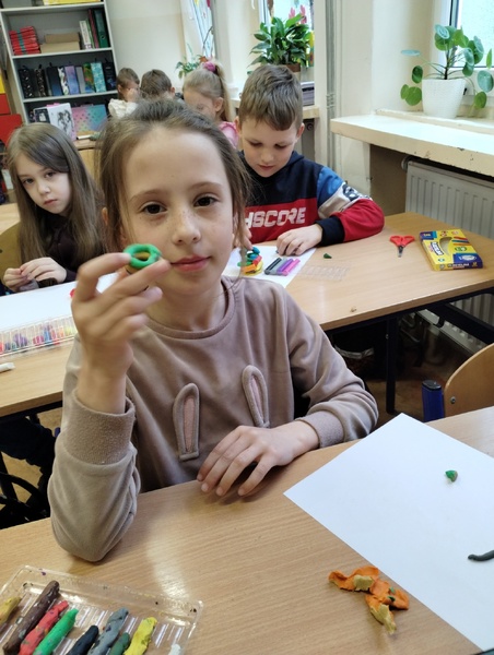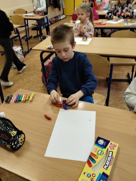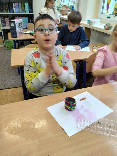 Dzieci z klasy ID poznały dzisiaj zawód garncarza. Dowiedziały się dzisiaj, że jest to jedno z najstarszych rzemiosł znane aż od neolitu. Jest to rękodzielniczy wyrób ceramicznych naczyń i przedmiotów codziennego użytku. My również wcieliliśmy się w rzemieślnika zajmującego się garncarstwem. Staraliśmy się dzisiaj stworzyć piękne rękodzieła: kubki, talerze, dzbanki itd. Do tej pracy zamiast gliny wykorzystaliśmy plastelinę, która jest produktem tanim i wielobarwnym. Głównym celem naszych zajęć plastycznych była edukacja i popularyzacja tradycji i rzemiosła ludowego, a w szczególności ginących zawodów naszego regionu. Dzieci okazały się twórcze i bardzo precyzyjne w swoich pracach. Zachwyciły nas swoją pomysłowością i szaloną cierpliwością, która jest niezbędna do tworzenia takich prac.