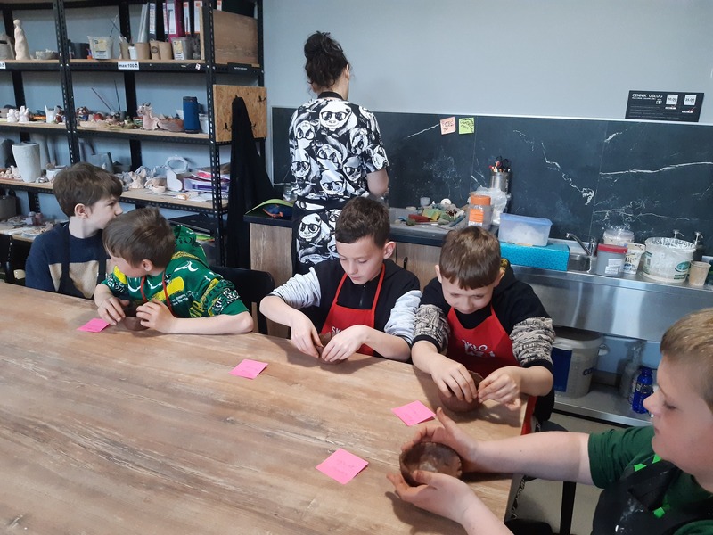 Uczniowie klasy 4d mieli dziś okazję sprawdzić swoje zdolności artystyczne podczas warsztatów ceramicznych w SKŁO 44.