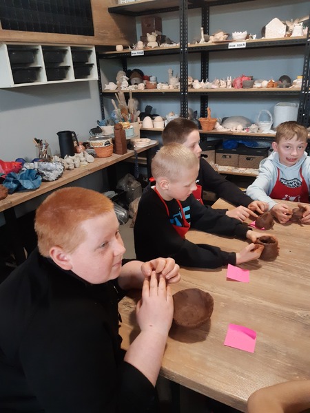 Podczas zajęć wszyscy w pełni się zaangażowali, a efekty naszej pracy były naprawdę ciekawe. Od małych postaci zwierząt po oryginalne kształty miseczek. Uczniowie pokazali, jak wiele można osiągnąć, mając tylko kilka kawałków gliny i trochę wyobraźni!