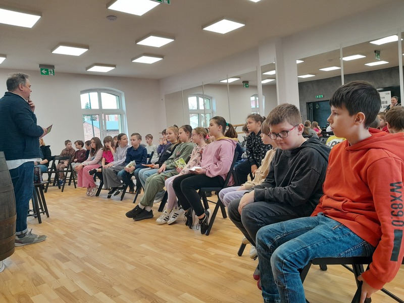 Właśnie w tak zabawnym tonie i pozytywnej atmosferze, w środę 24 kwietnia klasa 3A i 3E miały ogromną przyjemność uczestniczyć w spotkaniu z niezwykłym Grzegorzem Kasdepke - pisarzem dla dzieci i młodzieży, autorem scenariuszy, dziennikarzem. Uczestnicy dowiedzieli się jak powstawały bestsellerowe książki dla dzieci, jak wygląda praca pisarza, z humorem wyjaśniali związki frazeologiczne oraz mogli zamienić się w dziennikarzy zadając mnóstwo ciekawych pytań.