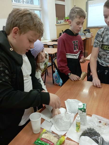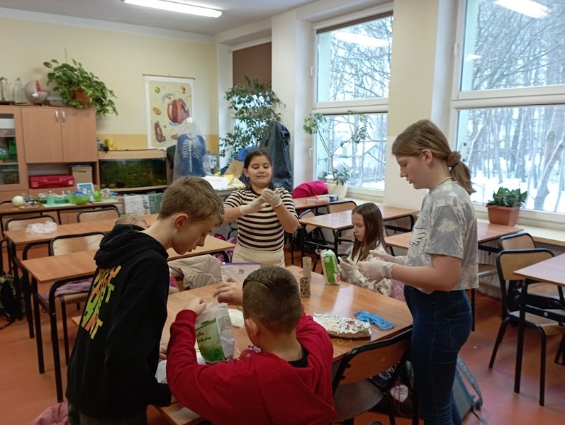 Koniec roku szkolnego nadchodzi dużymi krokami i niebawem zakończą się dodatkowe zajęcia koła przyrodniczego dla klas 4. Dlatego też przyszedł czas na krótkie podsumowanie działań bardzo zaangażowanego zespołu uczniowskiego. Pierwsze zajęcia poświęciliśmy zagadnieniom profilaktyki zdrowia, poznania ludzkiego ciała a także badaniu występowania substancji odżywczych. Następnie przyszedł czas na przygotowanie się do zimy i pomocy w dożywianiu ptaków oraz pokazy doświadczeń. Wraz z nadejściem wiosny uczniowie z kółka wyruszyli w teren, aby go uporządkować i przygotować do wysiewu kwietnej łączki. Przed nami jeszcze wycieczki w teren i obserwacje przez lupę i lornetkę. Zapraszamy za rok do udziału w kole przyrodniczym przyszłe klasy czwarte!