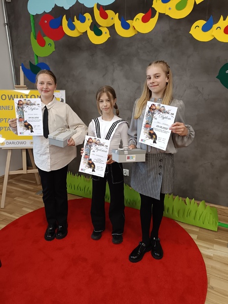 Uczennice naszej szkoły: Antonina Dusza i Marika Stermach z kl.5D, zostały finalistkami Powiatowego Turnieju Recytatorskiego „Ptaki, Ptaszki i Ptaszęta Polne”.