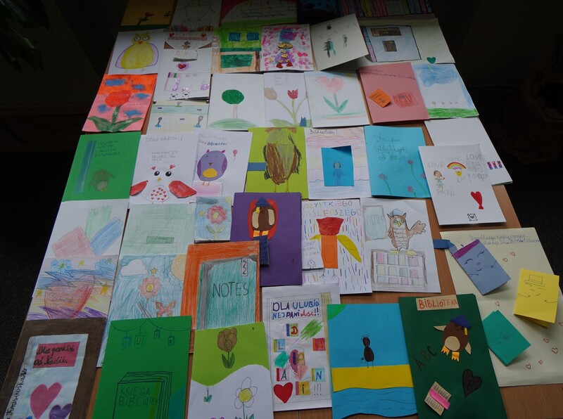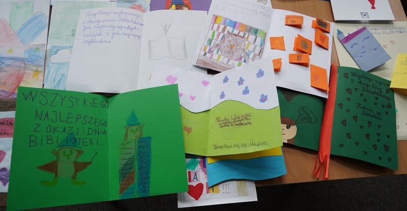 Z okazji Dnia Bibliotekarza i Bibliotek został zorganizowany w naszej szkole Konkurs plastyczny dla klas I-IV pt. „Laurka z życzeniami dla biblioteki”.