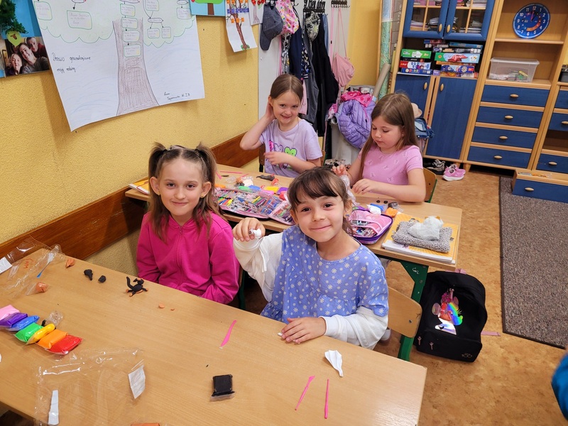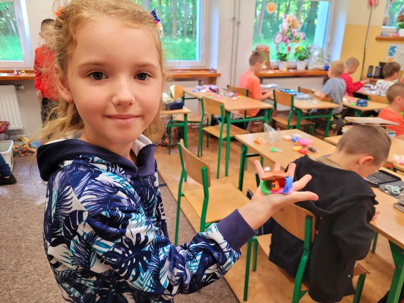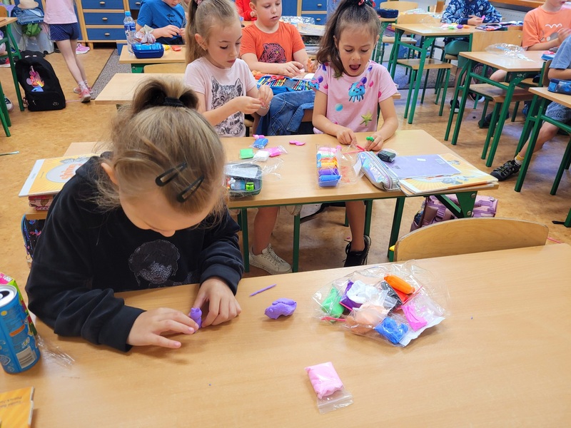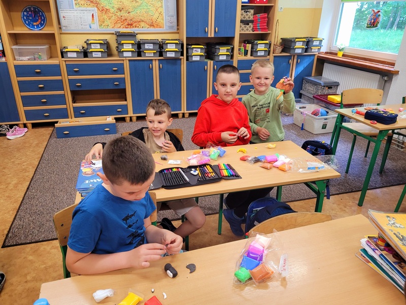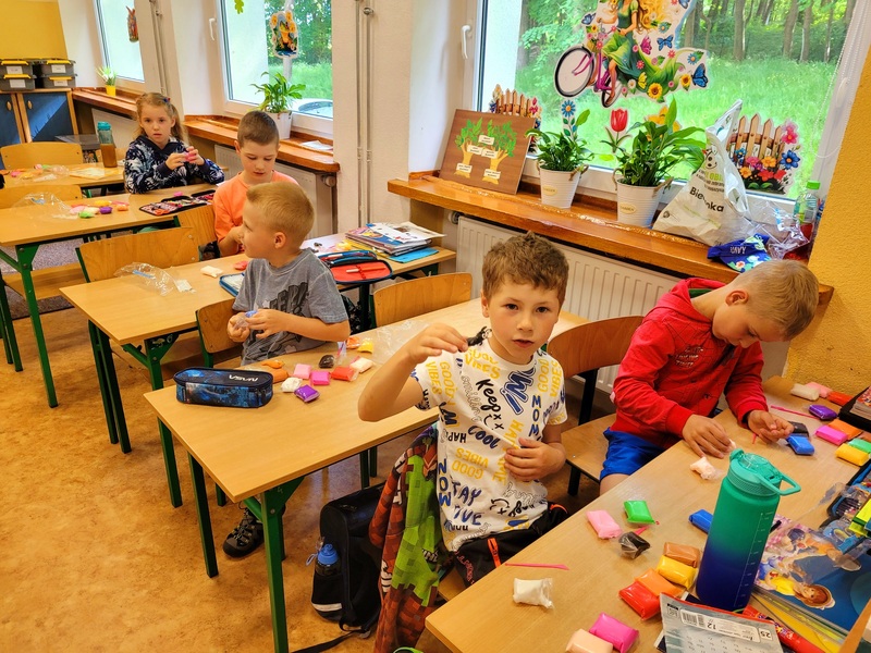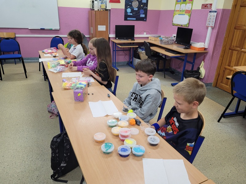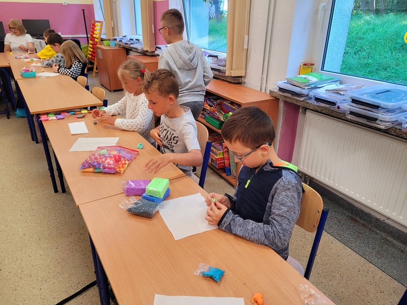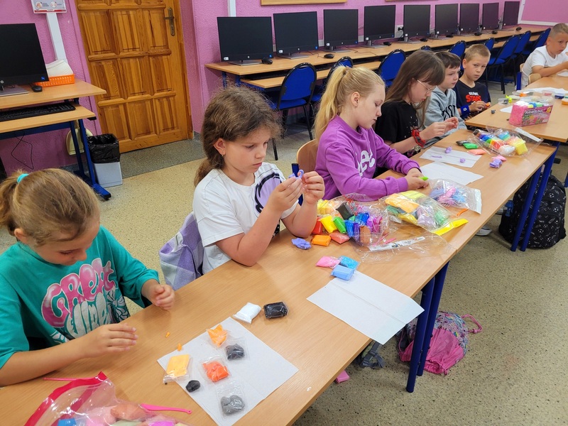 Pod okiem „instruktorki” dzieci uczyły się, jak prawidłowo wykonać poszczególne elementy figurek. Stworzyły prace według instrukcji oraz własnych pomysłów. Powstały: kotki, smoki, ptaki, kapibary a nawet piłeczki. Dzieci podczas warsztatów rozwijały wyobraźnię, kreatywność oraz motorykę małą. Zajęcia z piankoliny są formą terapii i mają działanie wyciszające i uspokajające, rozwijają również umiejętność współpracy w grupie.